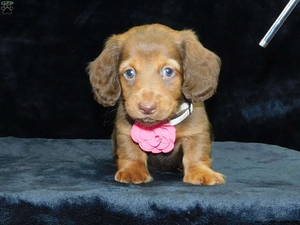 AKC!! Unique blue eyes!! Healthy!! Happy!! Huggable!! I am just what you are looking for!! I love being held and cuddled whenever I am not playing. I am pretty calm and easy going!1 My mom is our own sweet Annabelle a 10# AKC registered, long haired Mini Dachshund. Dad is our own majestic Copper, also an AKC registered, long haired Mini Dachshund weighing 14#. I come to you vet checked, up to date on all vaccines, and dewormed, and with a one year health guarantee. Call or text Fran today to find out more on the process of adopting me into my new furever home.Delivery is available anywhere in the USA. There will be a 7 % sales tax charge for all in home pick ups.