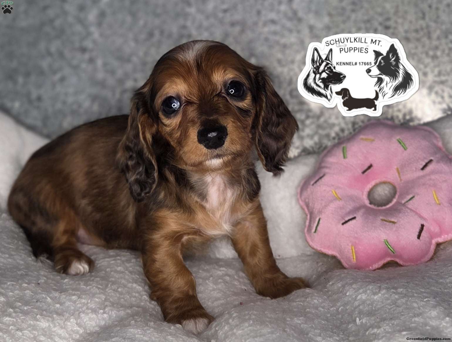 These sweet mini doxies are raised in our home and socialized with other dogs as well as children. They are snuggled daily! These pups will come home with a bag of food they are currently eating, blanket with moms scent, a toy as well as the vet paperwork and my contract as well as the AKC paperwork. Pups will be limited registration (full registration/ breeding rights are an extra fee) message me with any questions. mom and dad are health tested.