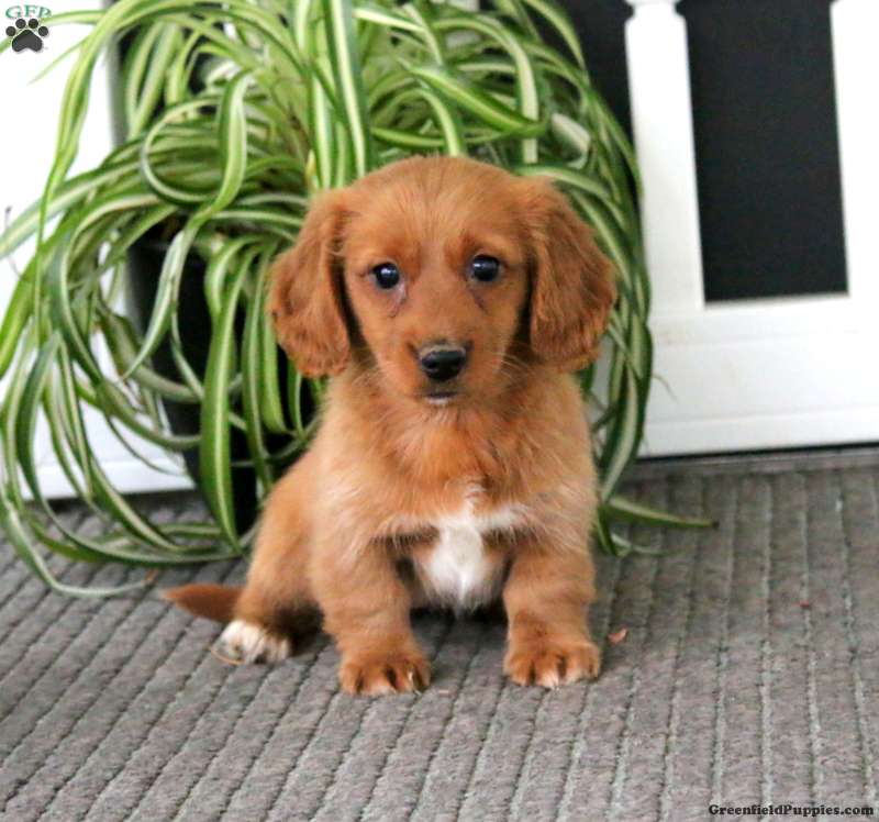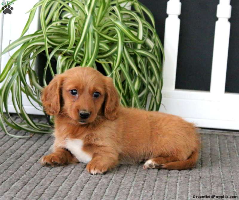 Here is Glow, a friendly Dachshund puppy who is socialized and ready to meet you! Sweet Glow comes home with a 30 day health guarantee plus an extended genetic health guarantee, both provided by the breeder. This petite pup has also been seen by a vet and is up to date on shots and de-wormer. Glow can be registered with the AKC and will be the best sidekick!