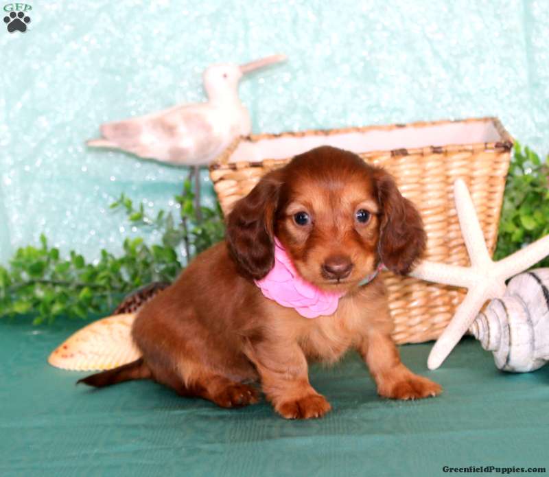 You will absolutely adore this soft and sweet Miniature Dachshund puppy! Jocelyn is fun spirited and ready to get to know her forever family! This cutie comes home microchipped and with health guarantees provided by the breeders, plus has been seen by a vet and is up to date on shots and de-wormer. She can also be registered with the ACA! Jocelyn is well socialized and will be so happy to meet you!