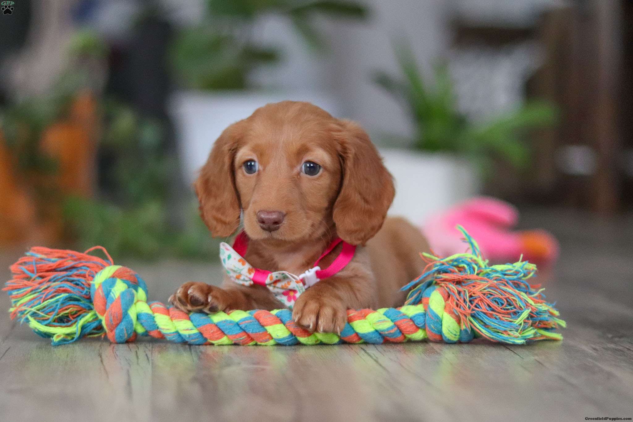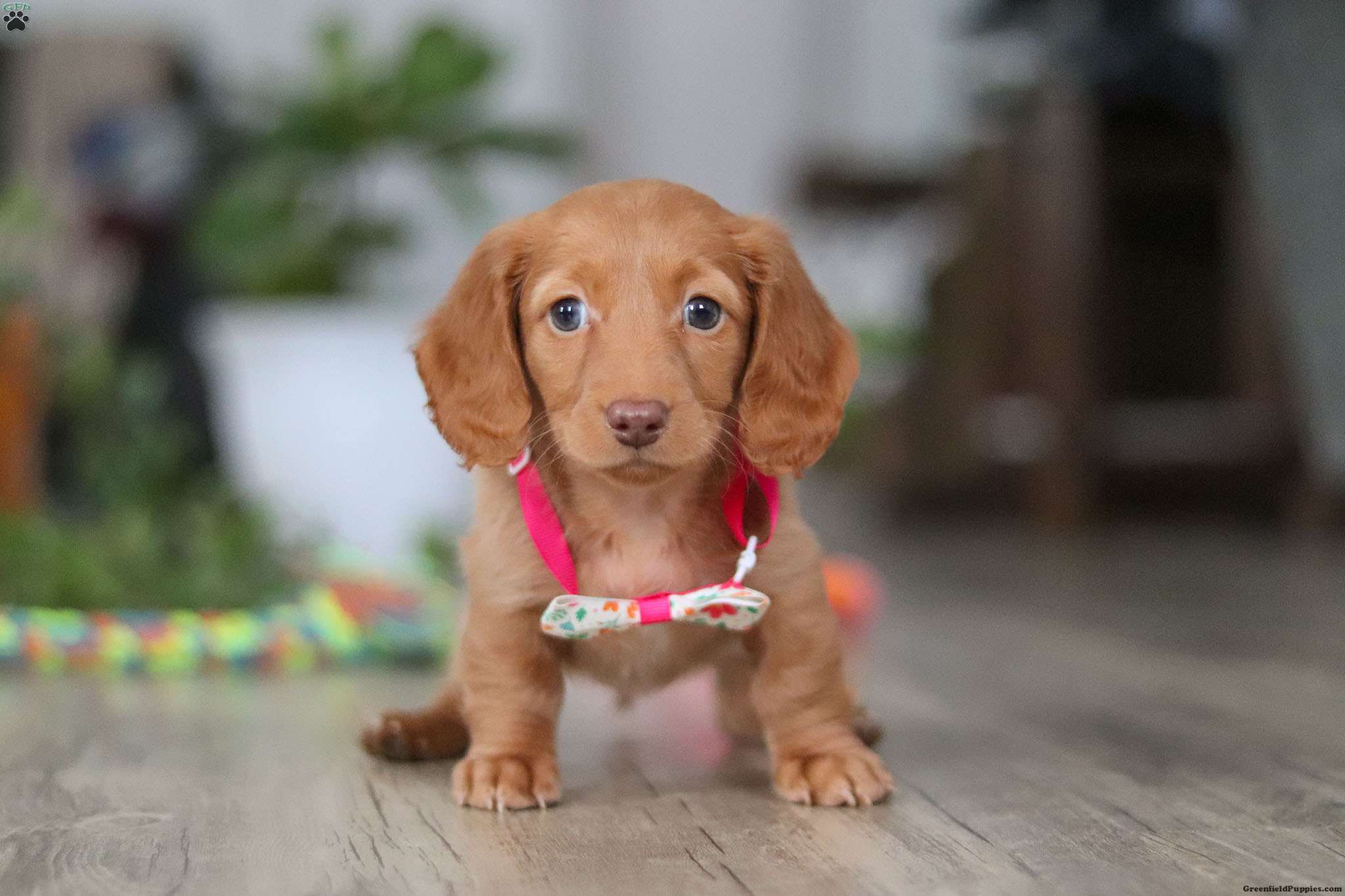 Meet Lily, an adorable Miniature Dachshund puppy with a big personality in a tiny package! With her sleek, shiny coat, soulful eyes, and classic short little legs, she’s absolutely irresistible. Sweet and charming with a fun-loving, playful side, she is curious, spunky, and always ready for action.