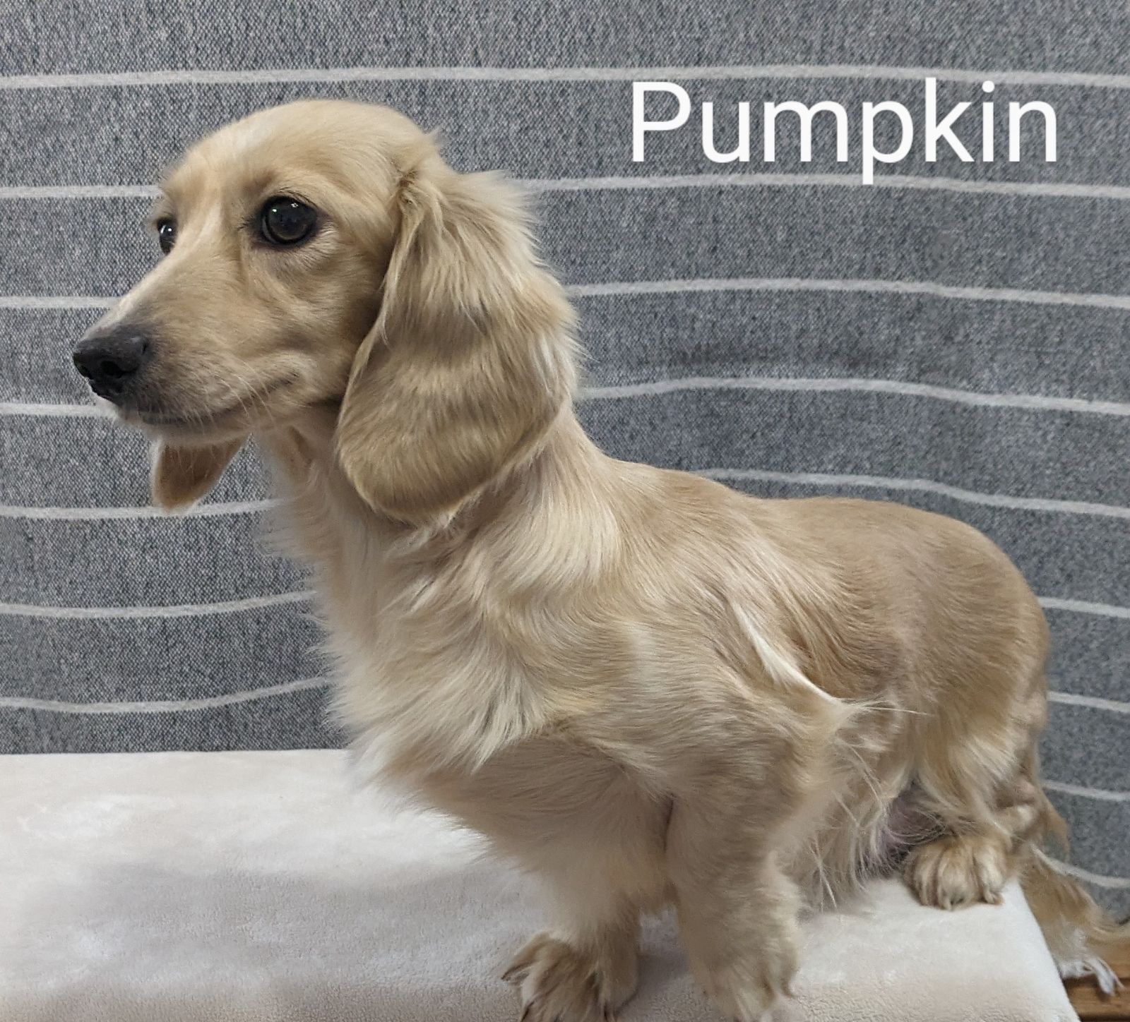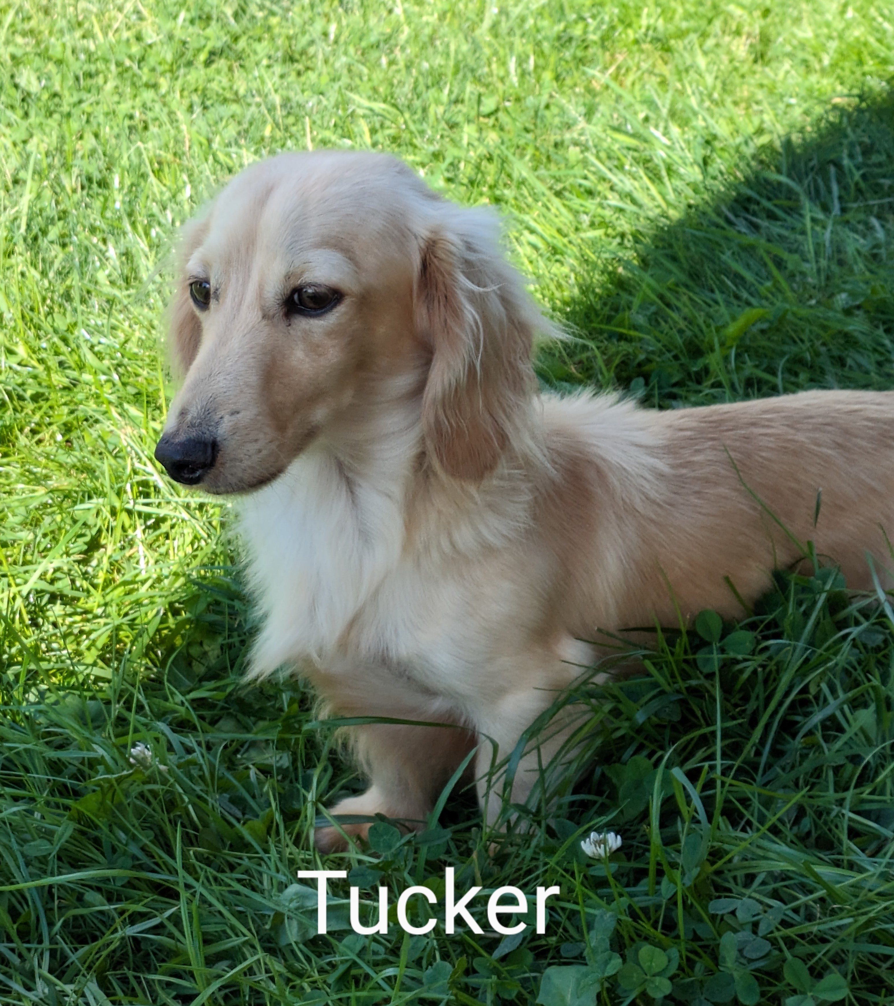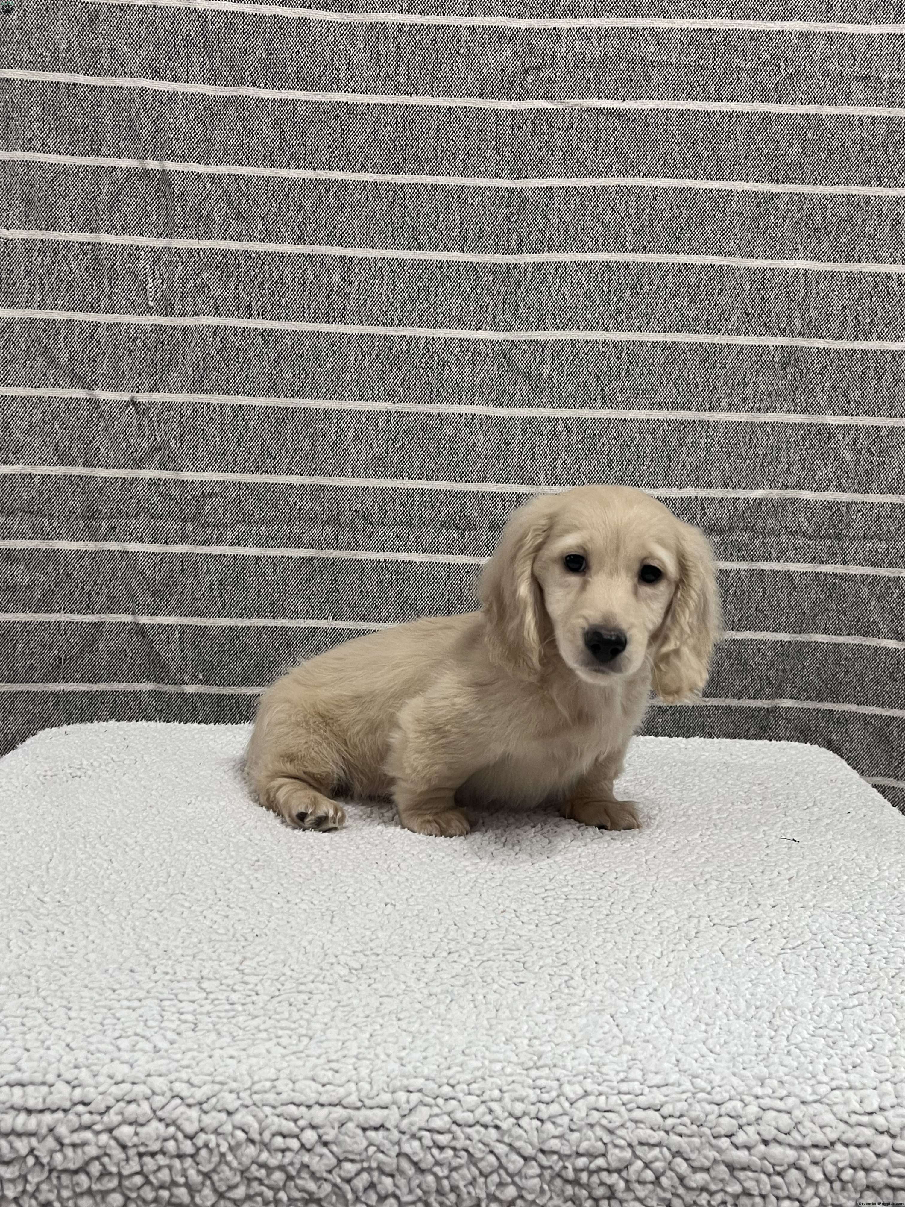 Meet Max! Max is a playful, friendly, outgoing English cream mini dachshund puppy. He has a beautiful double E cream coat. He is healthy, up-to-date with his vaccines and wormer, and ready for a forever family.