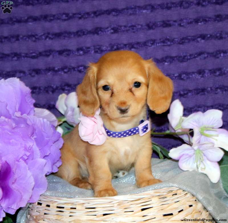 Megan is a precious Miniature Dachshund puppy who can be registered with the ACA and is microchipped. This cutie comes home with a 30 day health guarantee plus an extended genetic health guarantee, both provided by the breeder. Megan has been seen by a vet and is up to date on shots and de-wormer. This sweet little one is socialized and ready to meet you!