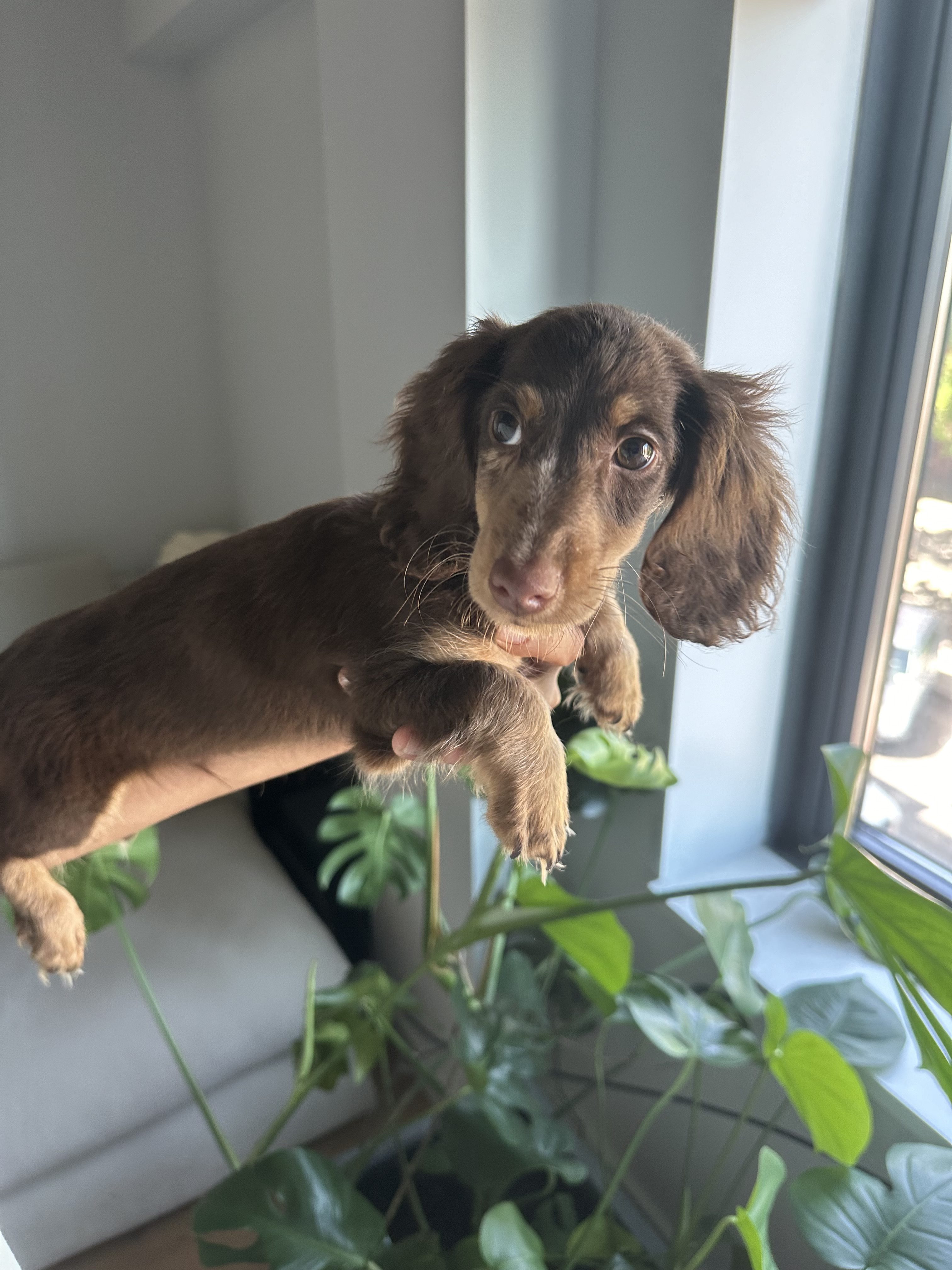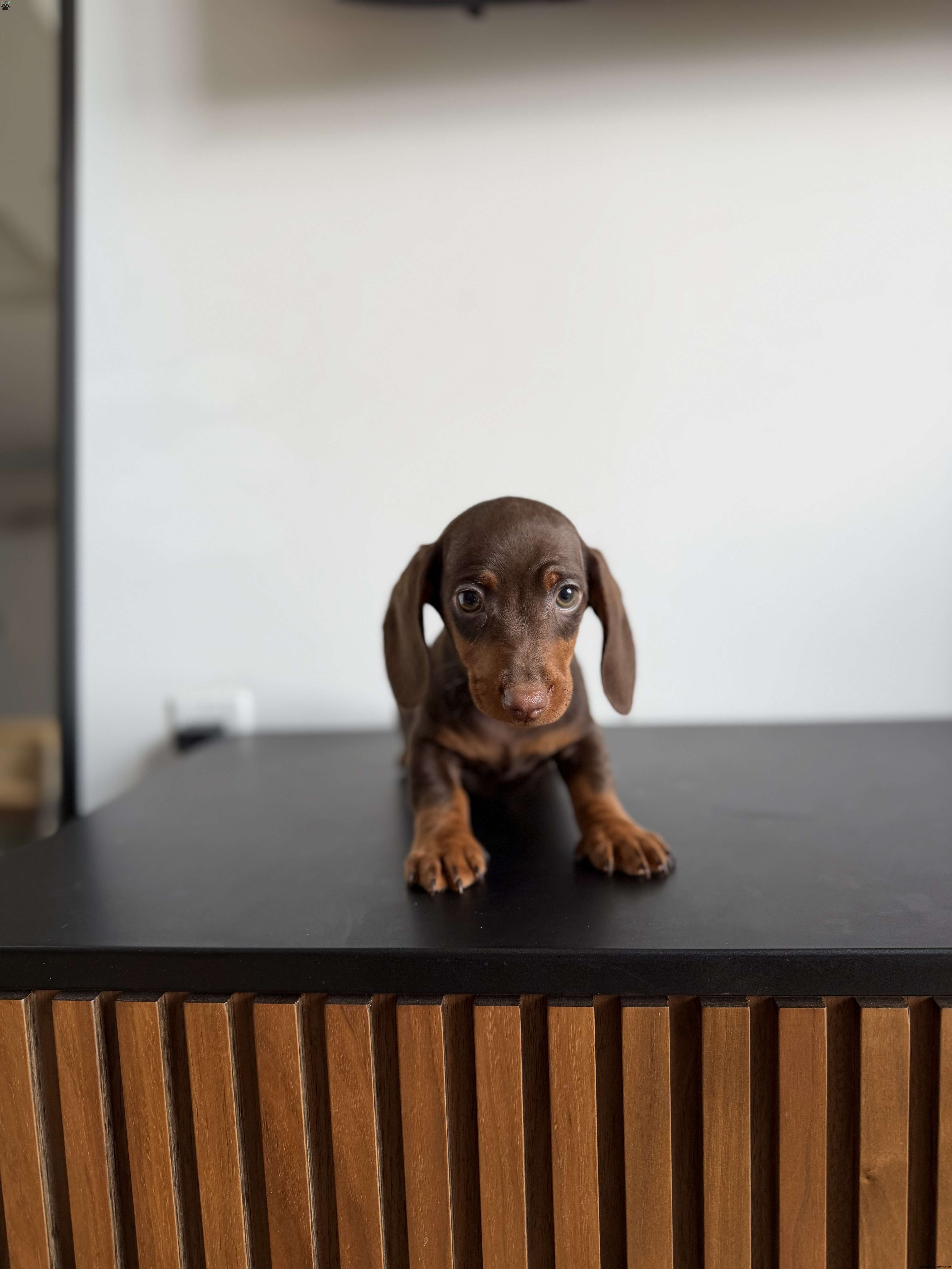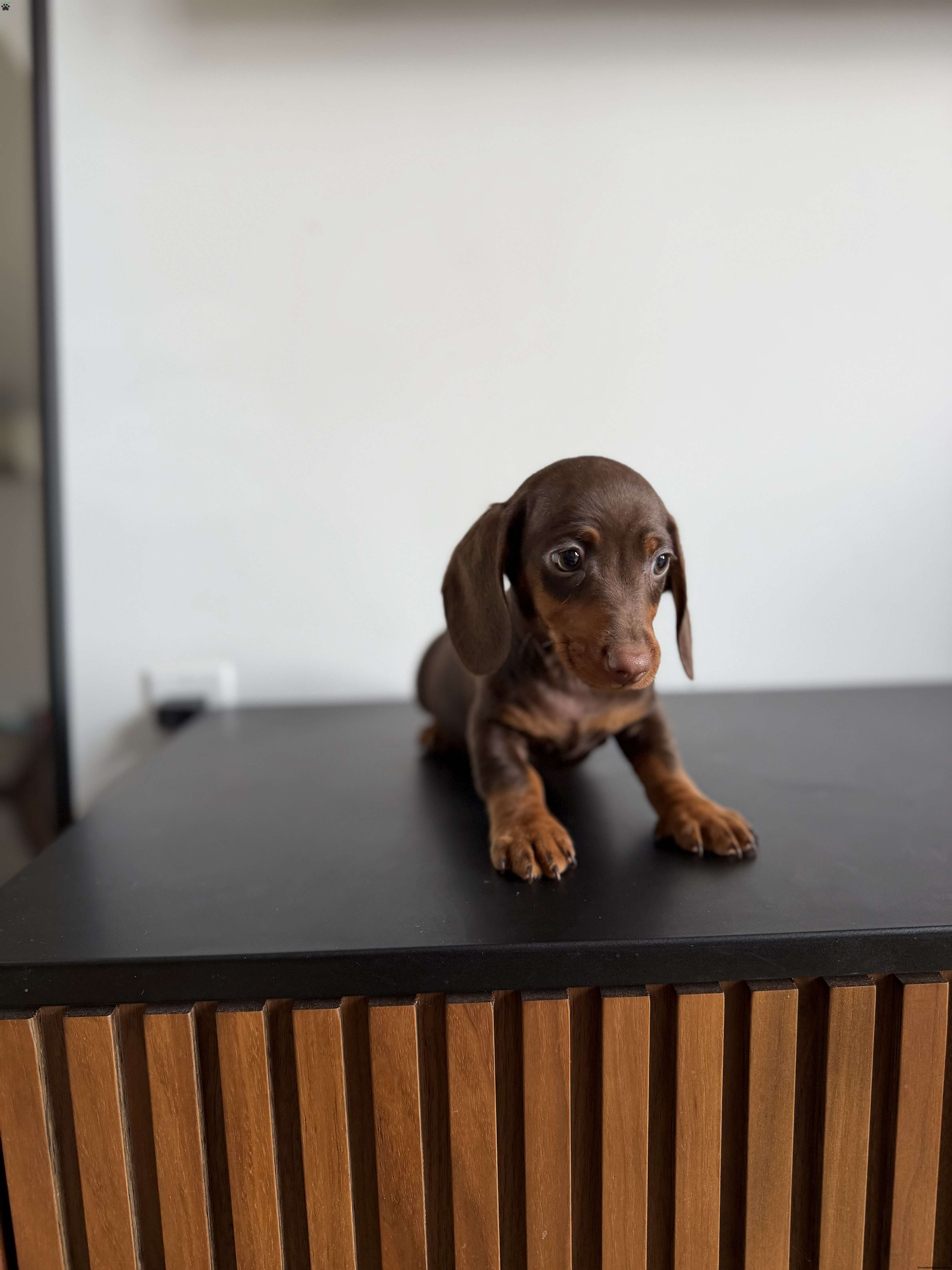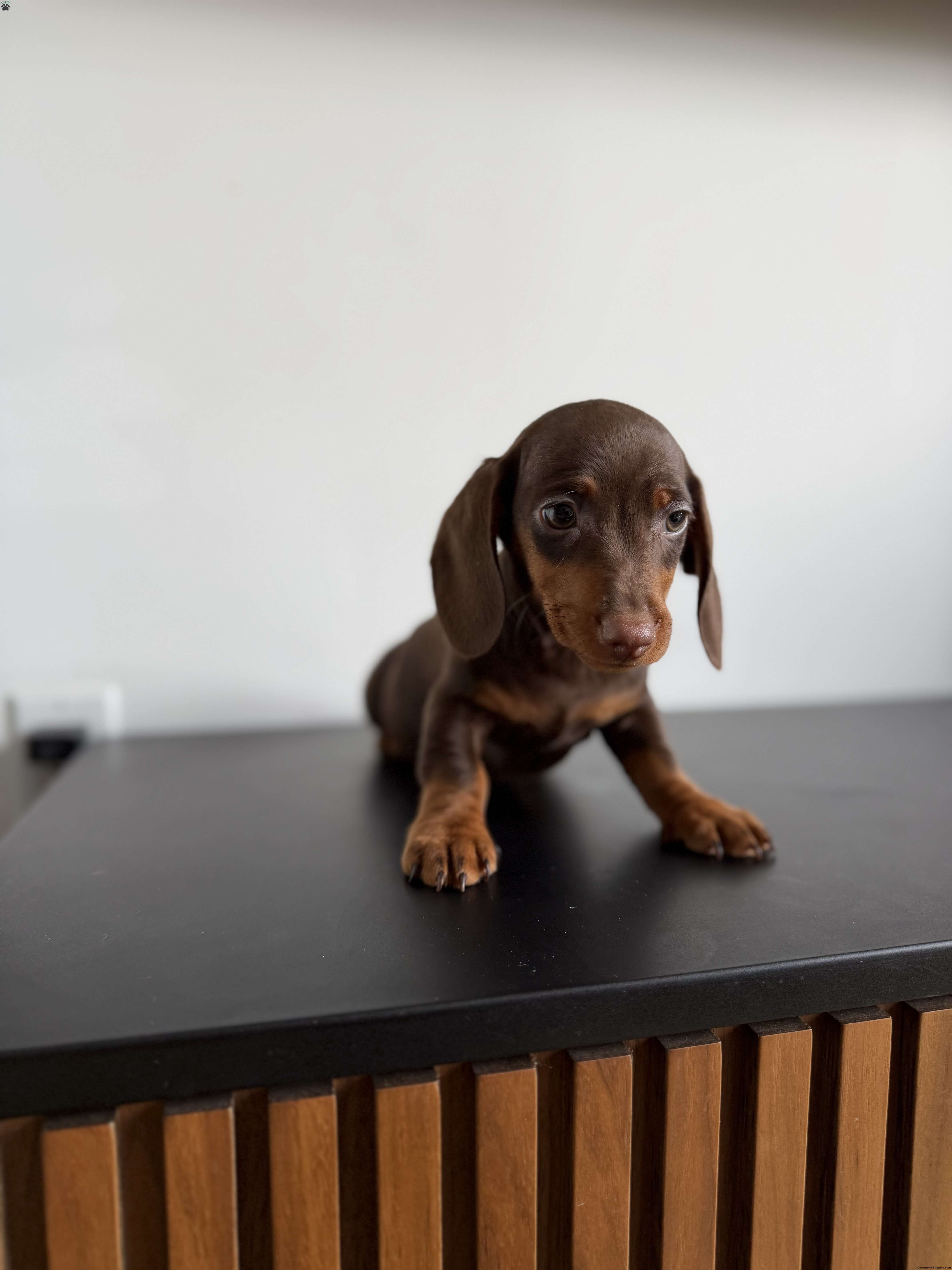 Our adorable mini dachshund puppy is expected to be around 10 lbs fully grown and comes from a loving, caring home. The puppy is well socialized, home trained, and familiar with everyday household routines. Each puppy goes home with a starter kit, including vaccines up to date, deworming up to date, and vet-checked paperwork. You’ll also receive a coupon for a free follow-up vet exam with Petco, along with a ziplock bag of their current food, collar, and wee-wee pads to help make the transition smooth and stress-free.
