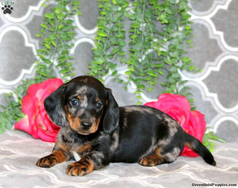 Meet Sammy, a happy Miniature Dachshund puppy who is socialized, family raised with children, and ready to be your beloved sidekick! Sammy can be registered with the ACA, is microchipped, and comes home with health guarantees provided by the breeder. This playful pup has been seen by a vet and is up to date on shots and de-wormer. Sammy is lovable and sweet!