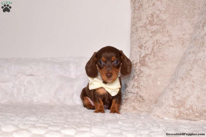 Meet Vincent! This adorable Mini Dachshund puppy is vet checked & up to date on shots & wormer. He can be registered with the AKC, plus comes with a health guarantee provided by the breeder! Vincent is well socialized & currently being family raised with children!