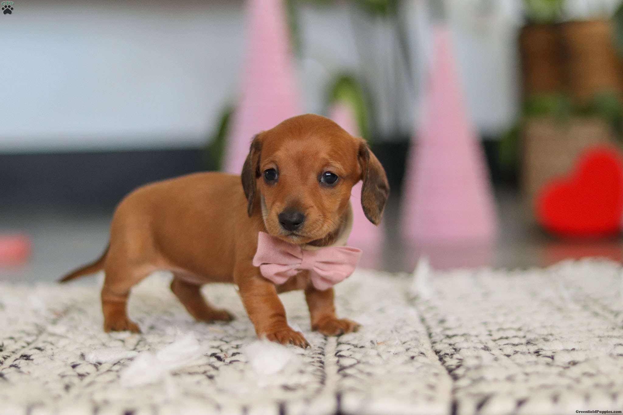 Meet Willow, a tiny bundle full of love, and curiosity. She is an AKC registered Miniature Dachshund girl. She has the sweetest little face and the softest coat—perfect for cozy snuggles by the fireplace. Brimming with energy yet gentle at heart, she spreads joy wherever she goes and turns every little adventure into a celebration. Her personality and loving nature make her the perfect little puppy to brighten any home! She is eager to learn, loves human companionship, and will quickly become a loyal best friend who fits right into your heart and home.