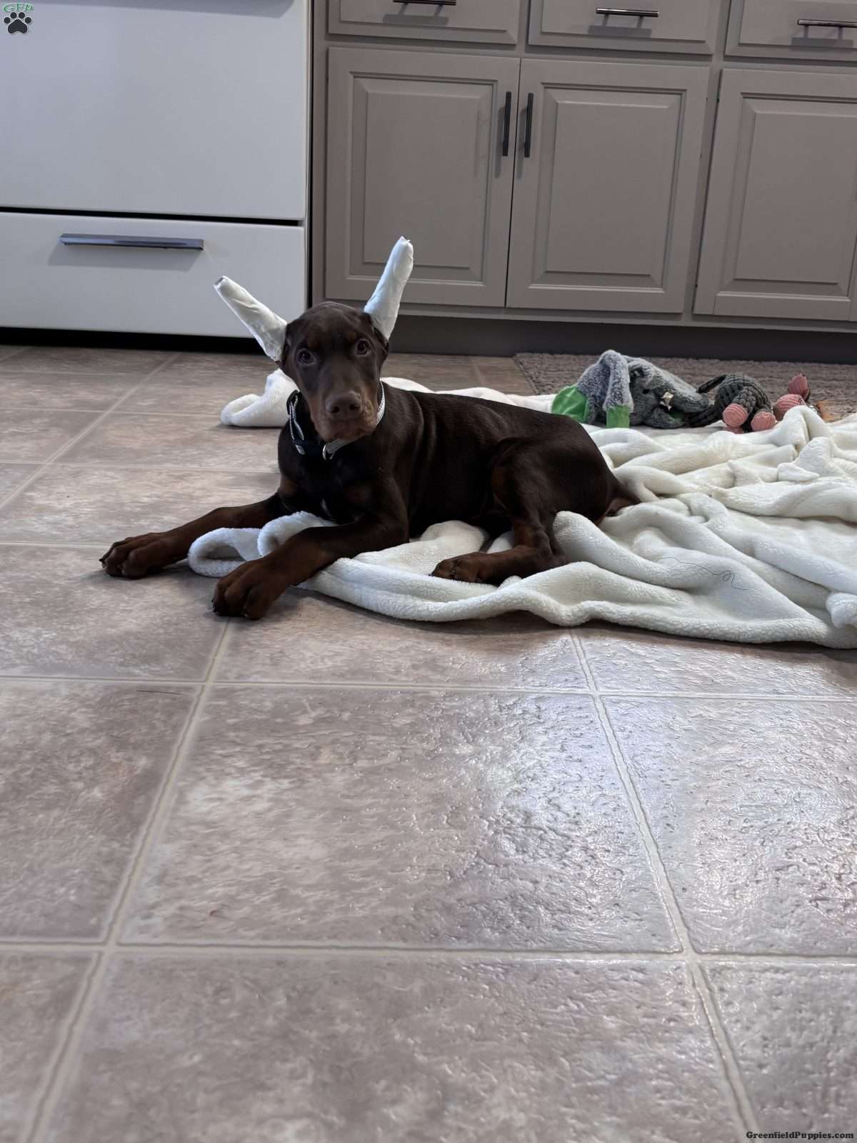 This puppy is no longer available. Go back to the Doberman Pinscher Puppies page or check out our New Arrivals for more adorable puppies for sale!