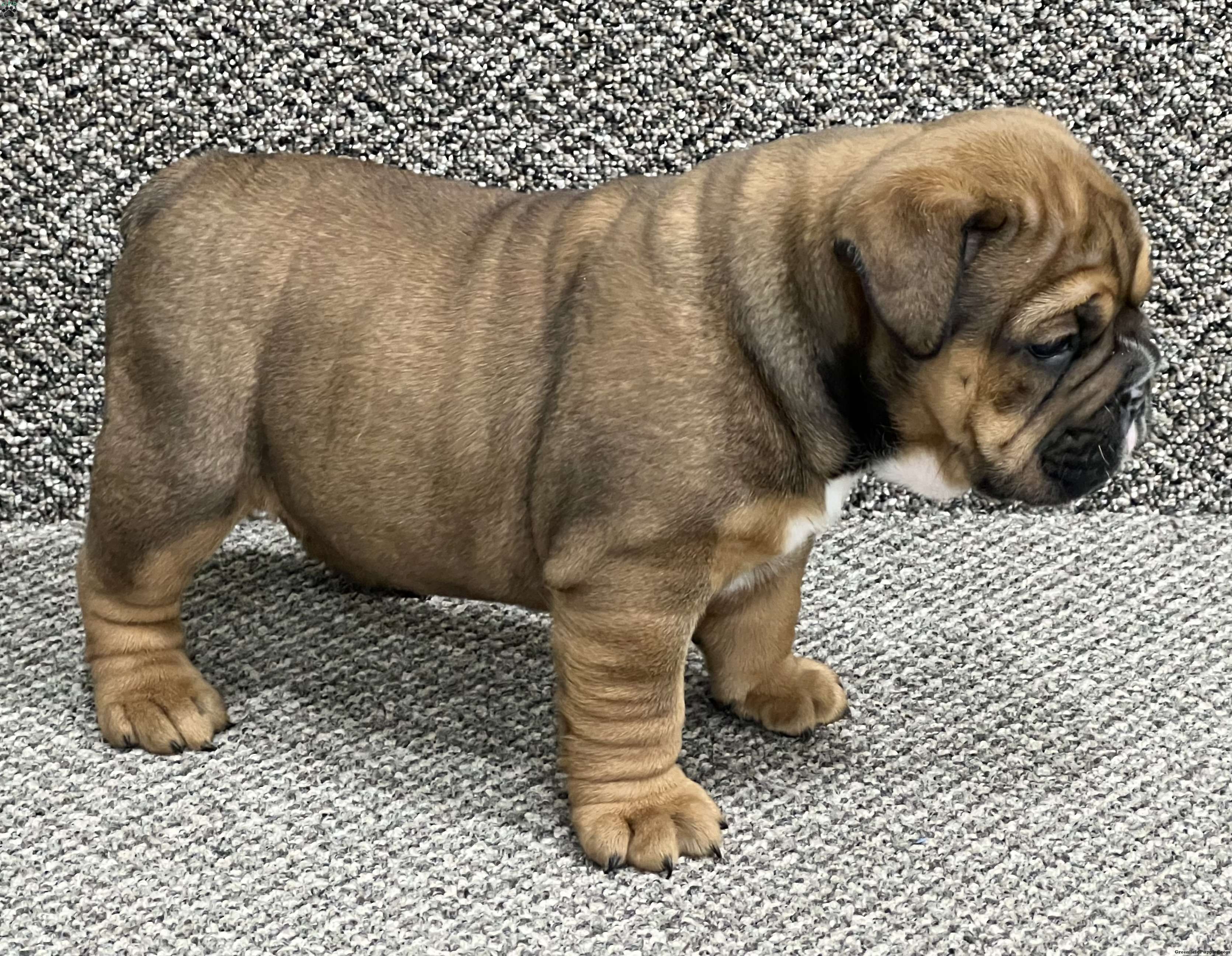 A beautiful 7/8 Bulldog, 1/8 Boxer pup with a great personality and maximum wrinkles!