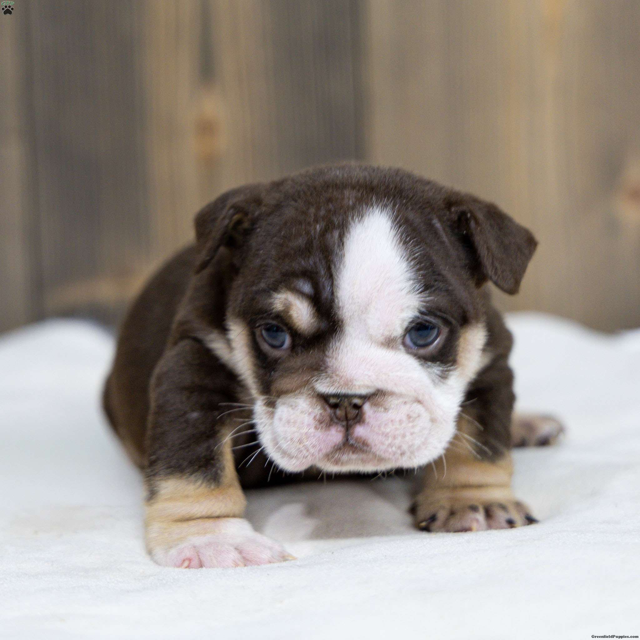 Raised with early enrichment and gentle handling, Cocoa Tide is a chocolate tri female English Bulldog puppy growing into a confident, well-adjusted companion. She receives daily interaction and thoughtful development to help her grow into a confident, well-adjusted companion.