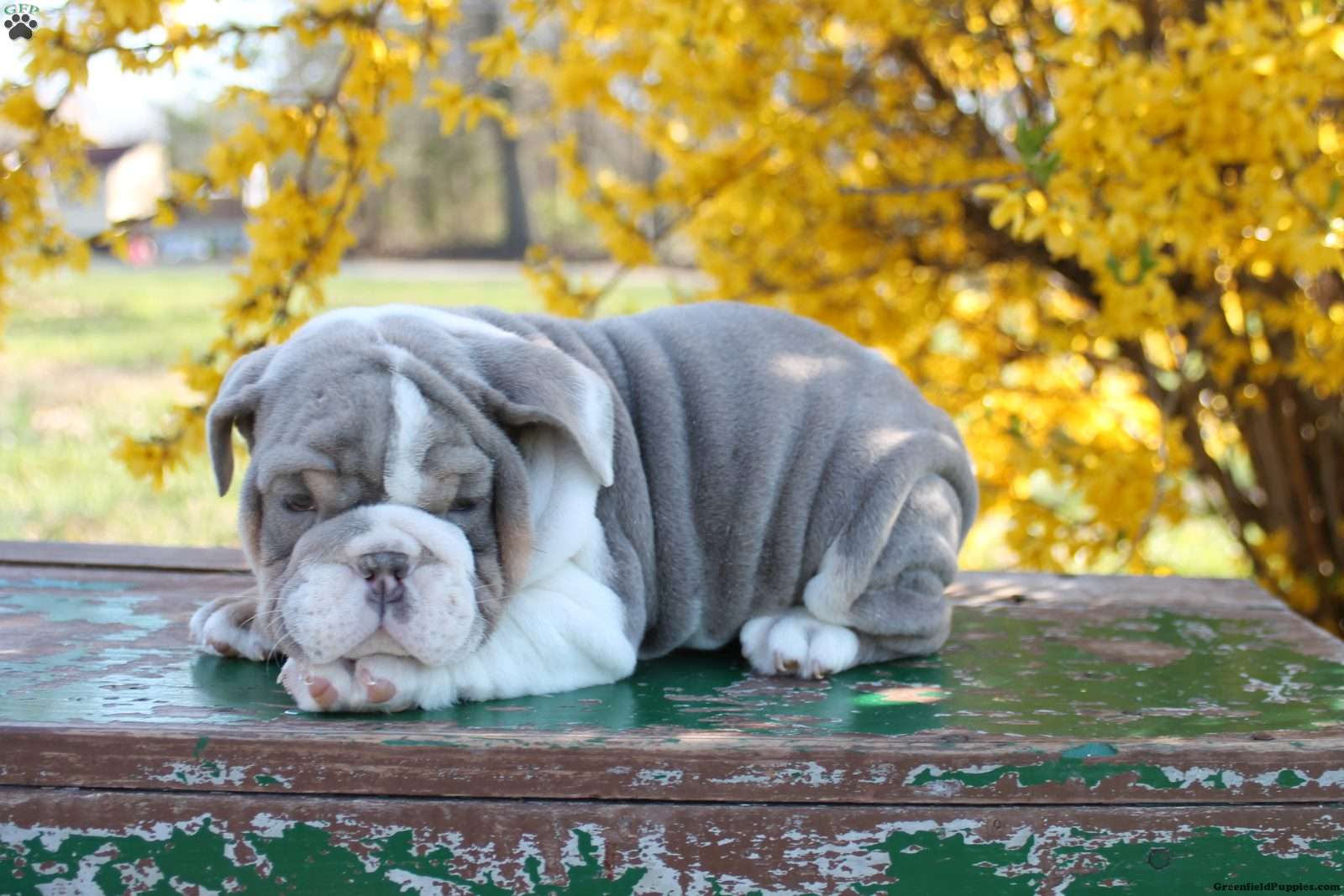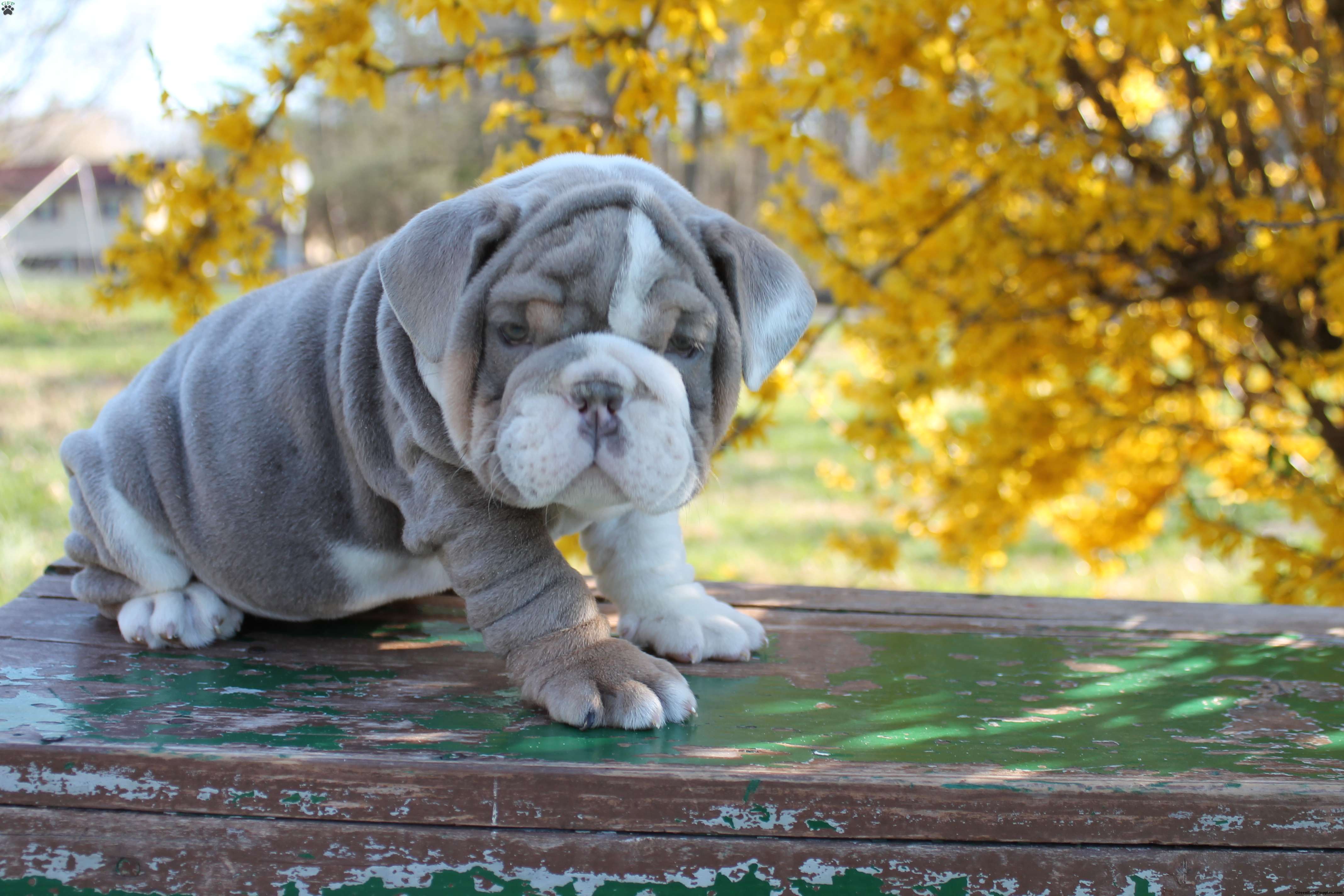 Meet Eli! He’s an adorably happy and wiggly English Bulldog puppy! Eli would love to meet you and introduce you to his slobbery kisses and signature friendly personality. He has seen his vet for a basic health exam, his vaccinations are up to date, and he has been dewormed. Call Emma to learn more about this handsome guy!