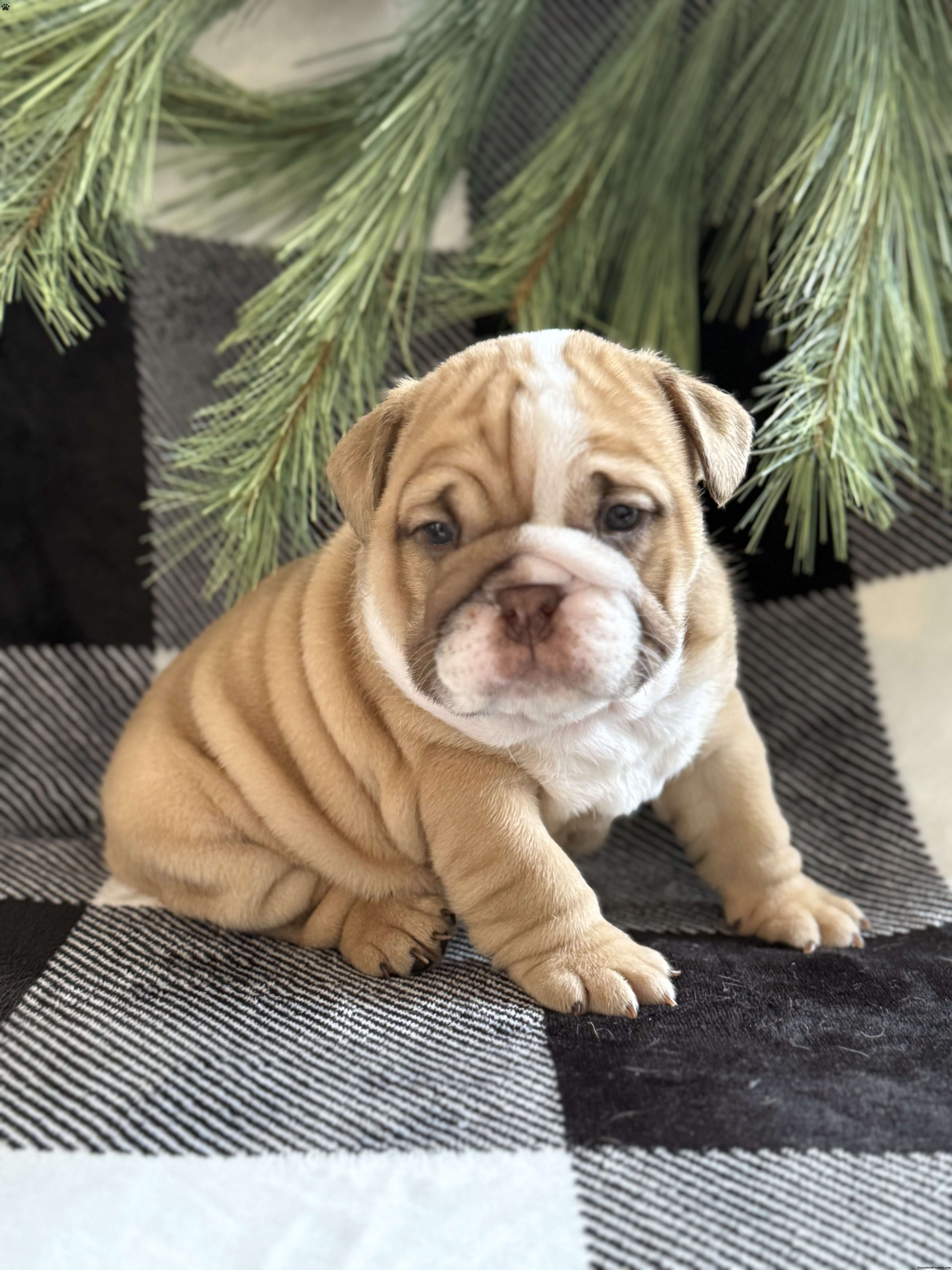 Gracie is a pure bred English bulldog! She has lots of wrinkles for you to love on! She will make a great Christmas gift for your loved one! She will be vet checked have her first shot and dewormed! Call today to reserve her till ready for her forever home