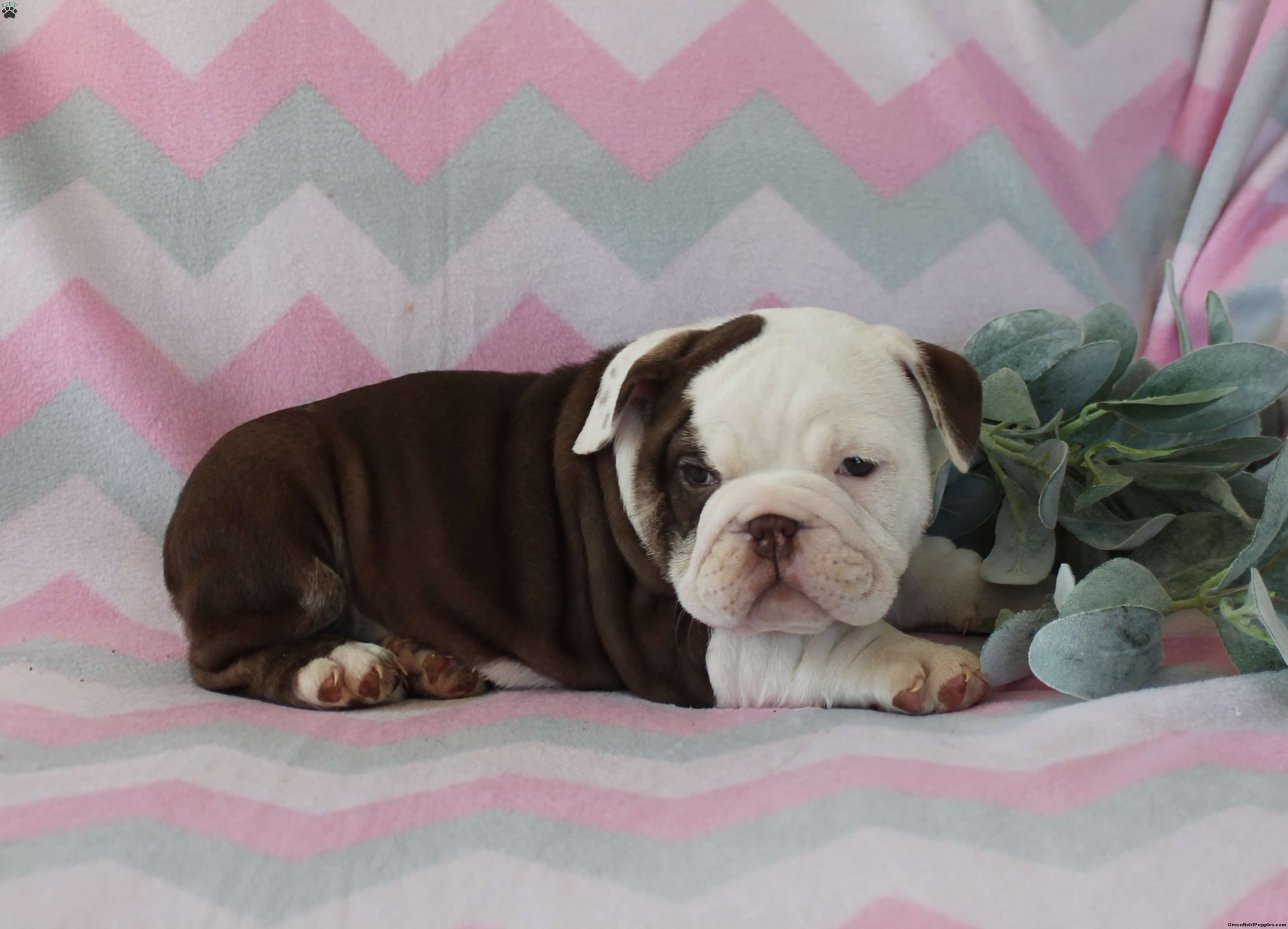 Precious is a delightfully friendly and wiggly English Bulldog puppy.  She loves adventure and romping.  She would love to meet you and steal your heart with her slobbery kisses! Precious has seen her vet for a basic health exam,  is up to date with her vaccinations,  and has been dewormed.  Call Emma to learn more about this cutie!