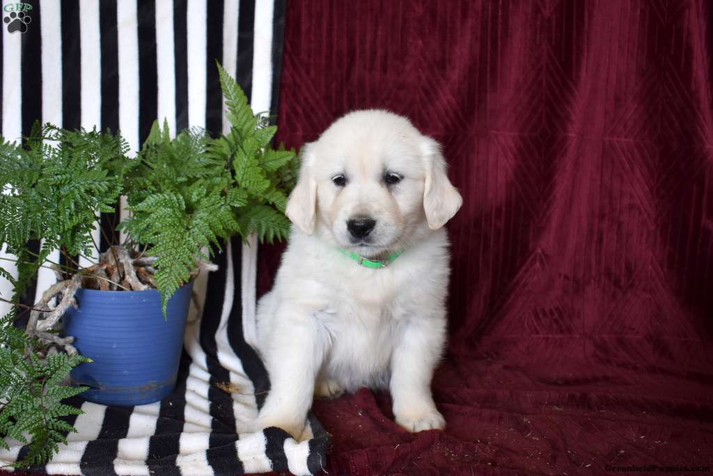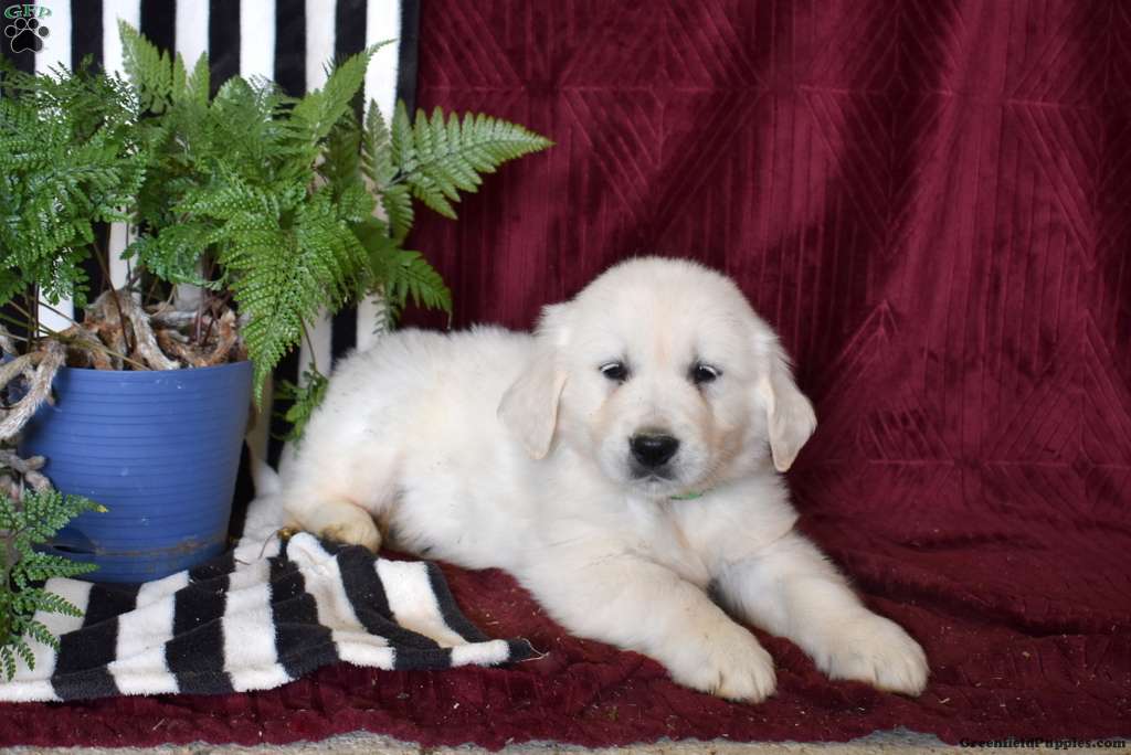Come and meet Buddy, a delightful English Cream Golden Retriever puppy who loves to play! This happy boy can be registered with the AKC plus comes home with a 30 day health guarantee provided by the breeder. Buddy has been seen by a vet and is up to date on shots and de-wormer. This sweetheart is socialized, family raised with children, and ready to be your favorite sidekick!