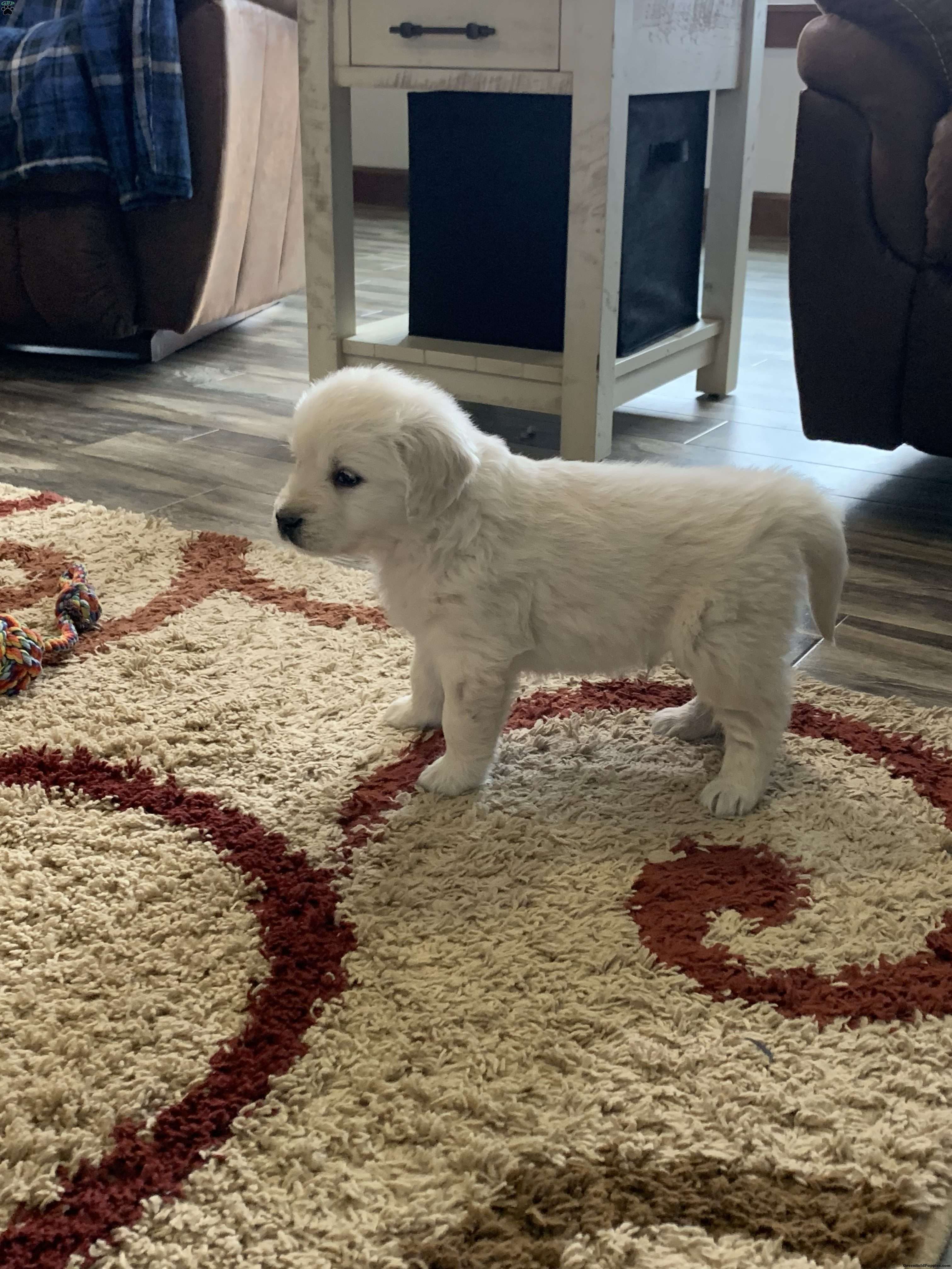 Meet Glacier, one of our adorable, English cream golden retrievers! He is a healthy, happy puppy, who is well socialized and loves to play. Our puppies are up-to-date on vaccines dewormed and are vet checked and Microchipped. The parents Gypsy and Magnum have both been genetically tested and are clear. We are located in the beautiful rolling hills right outside of Sugarcreek Ohio. We would love for you to come meet us and glacier in person but if time and distance does not allow that we also offer ground shipping at an additional cost of $300-$400 depending on your location. If you are interested, or have any questions, please feel free to reach out to us. Thank you!!