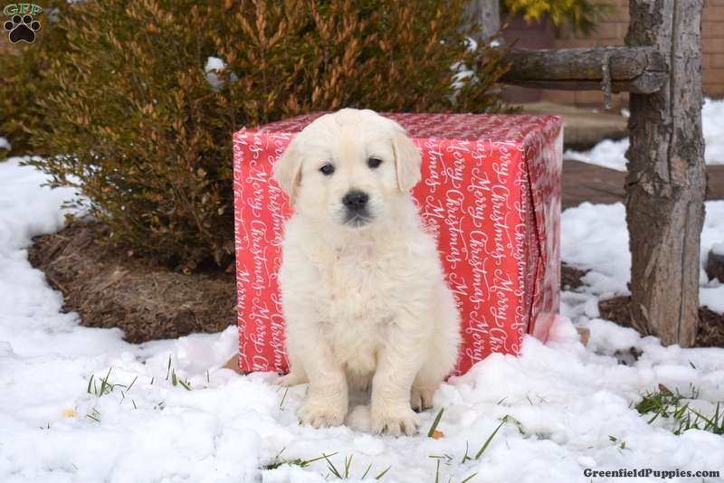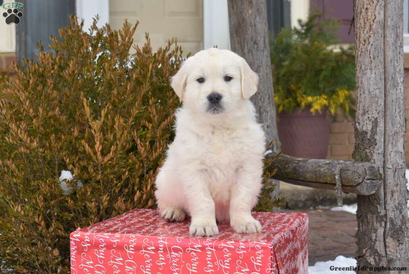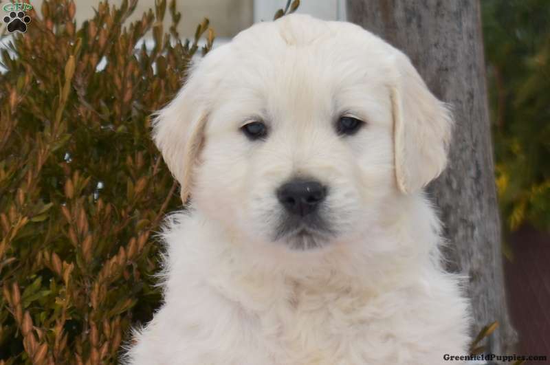 Pringles is a cuddly and charming English Cream Golden Retriever puppy who loves to play! This cutie is socialized, family raised with children, and ready to meet you! Pringles comes home with a health guarantee provided by the breeder, plus has been seen by a vet and is up to date on shots and de-wormer.