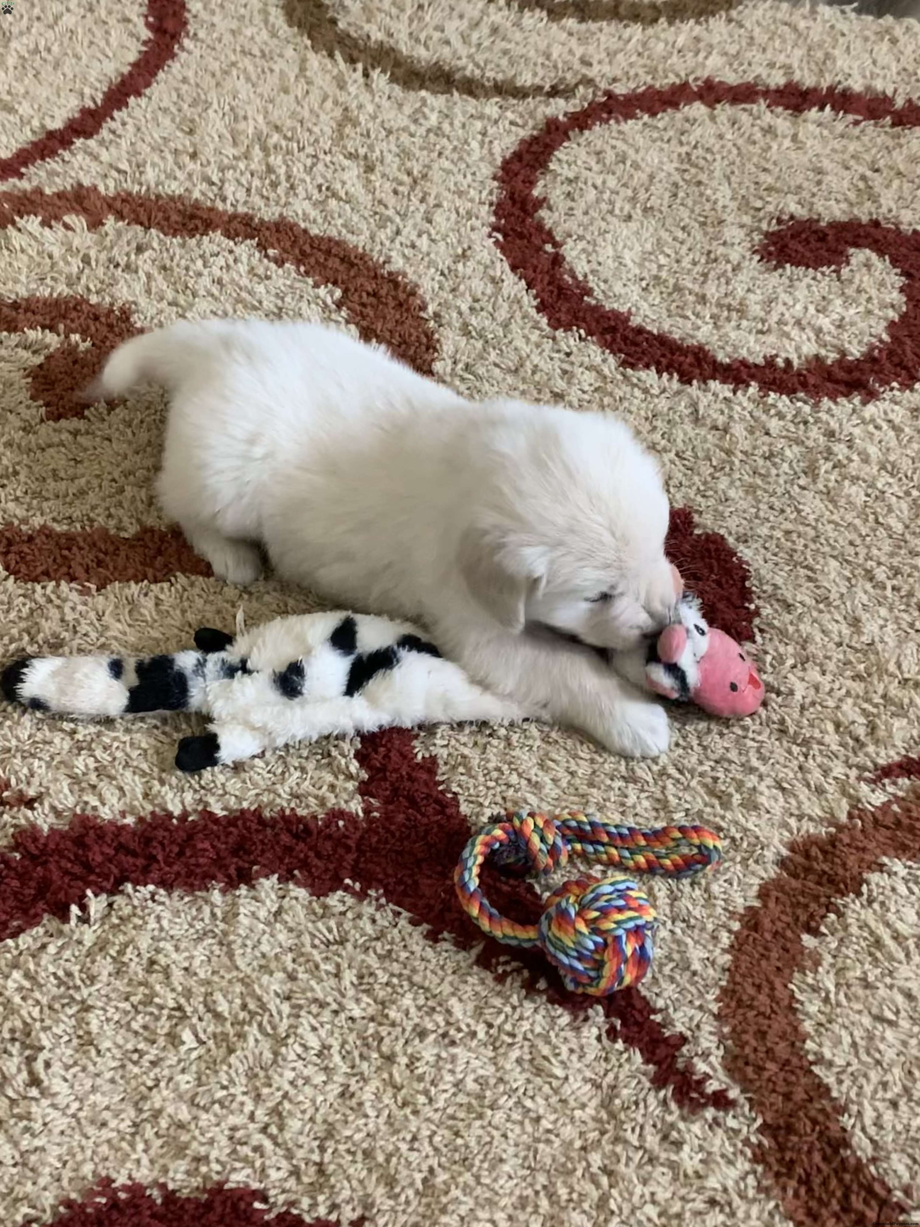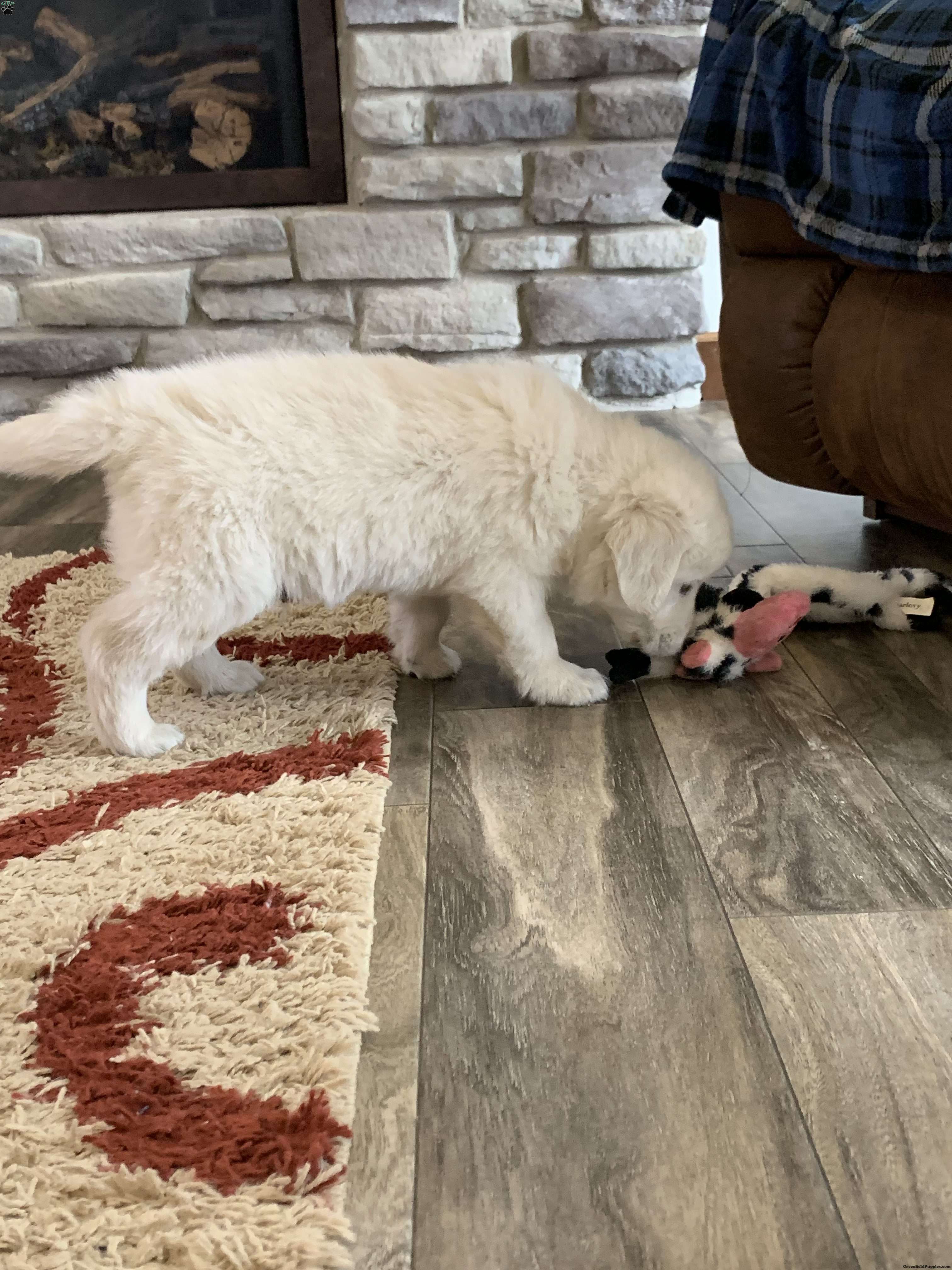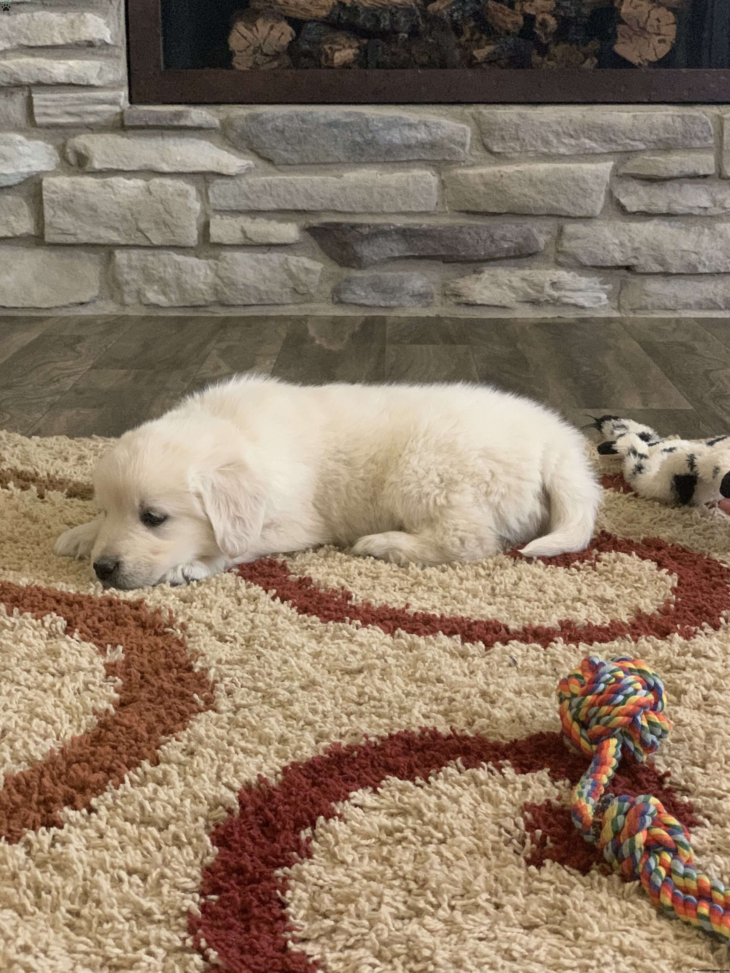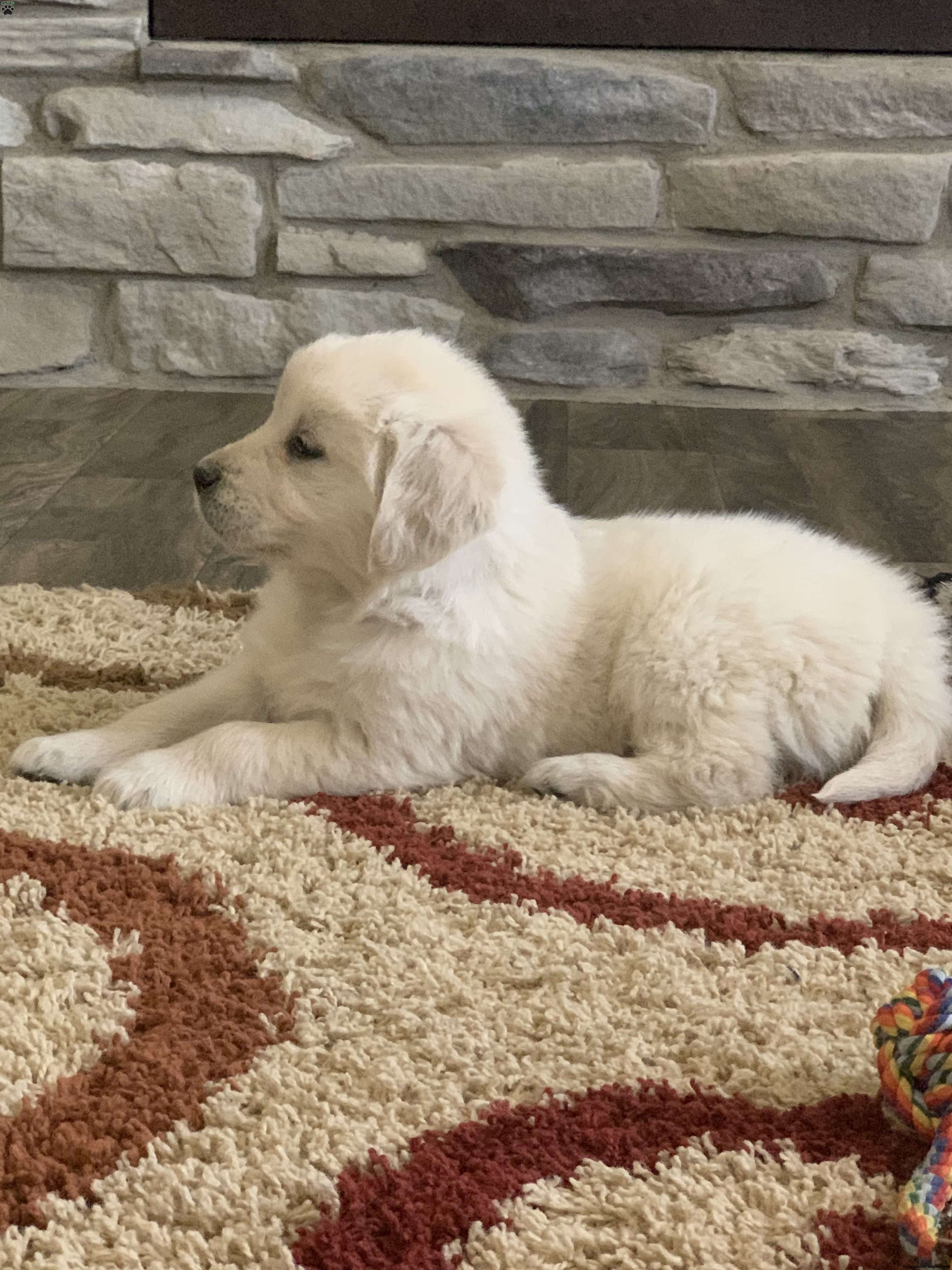 Meet Tommy, one of our adorable English Cream golden retrievers! He is a healthy, happy puppy who is well socialized and loves to play. Our puppies are up to date on vaccines, dewormed and have been vet checked and microchipped. The parents Gypsy and Magnum have been genetically tested and are both clear. We are located in the beautiful rolling hills just outside of Sugarcreek Ohio. We would love for you to come meet us and Tommy in person but if time and distance does not allow that we also offer ground shipping at an additional cost of $300-$400 depending on your location. If you are interested or have any questions please feel free to reach out to us. Thank you!!