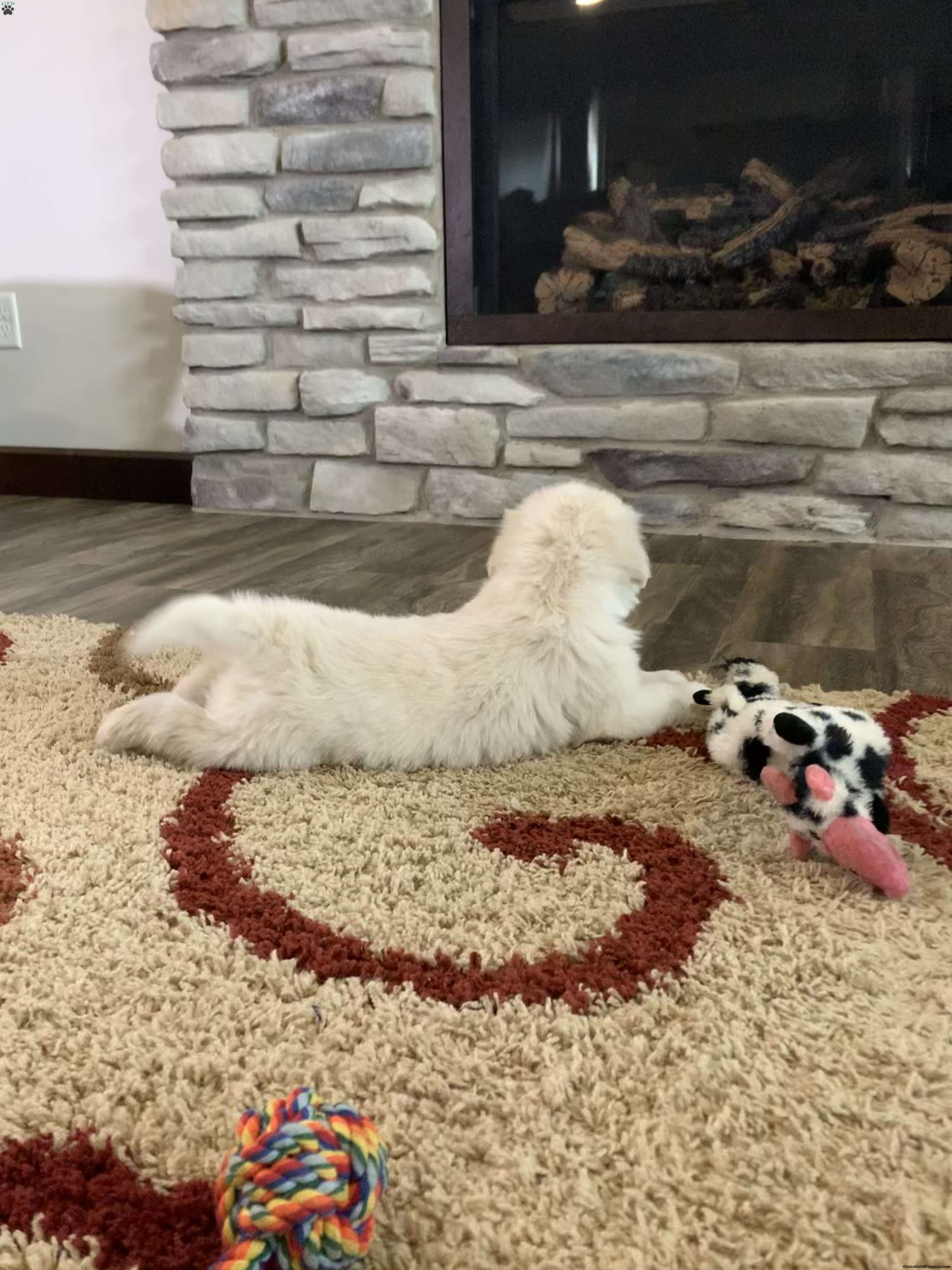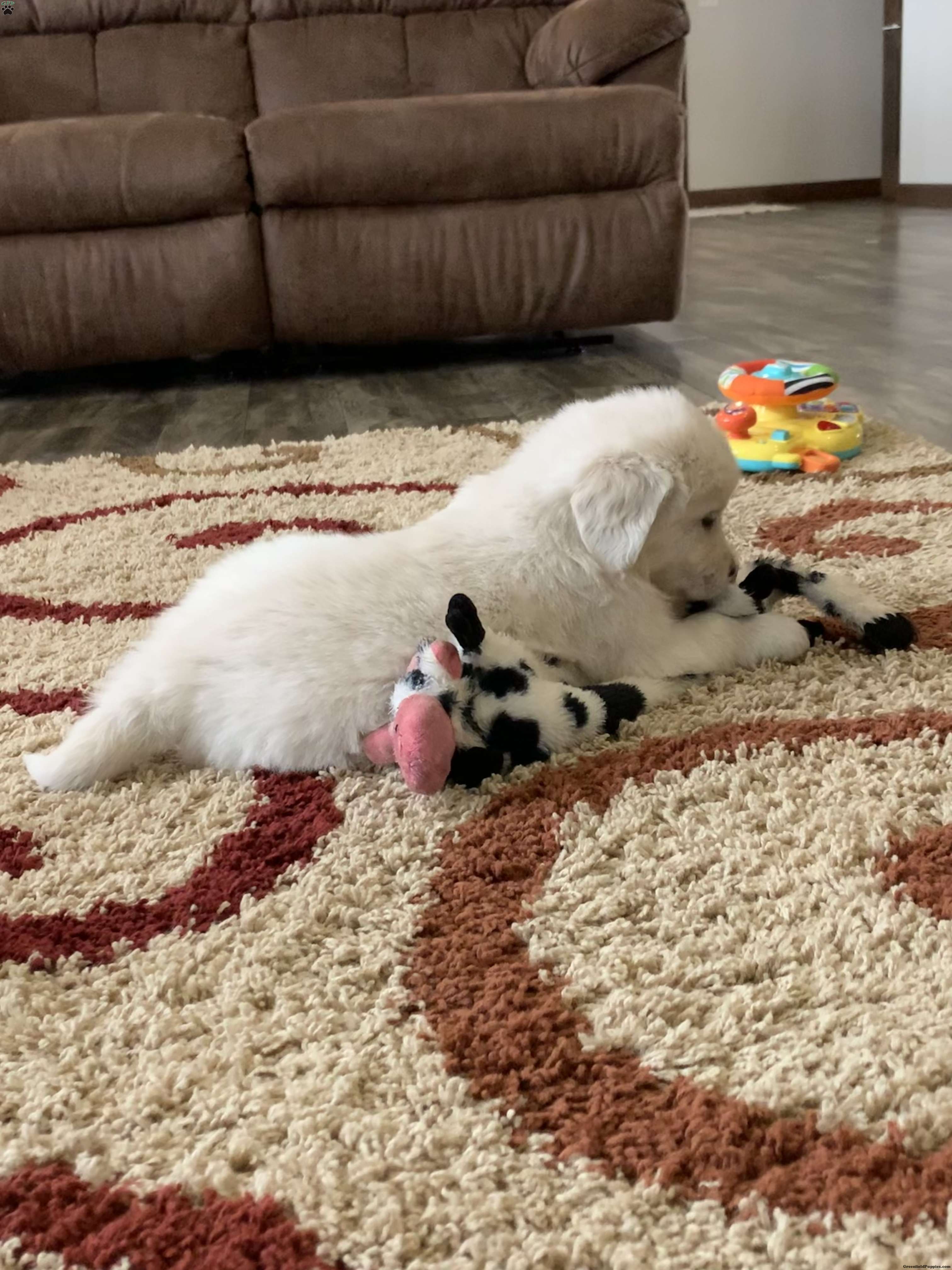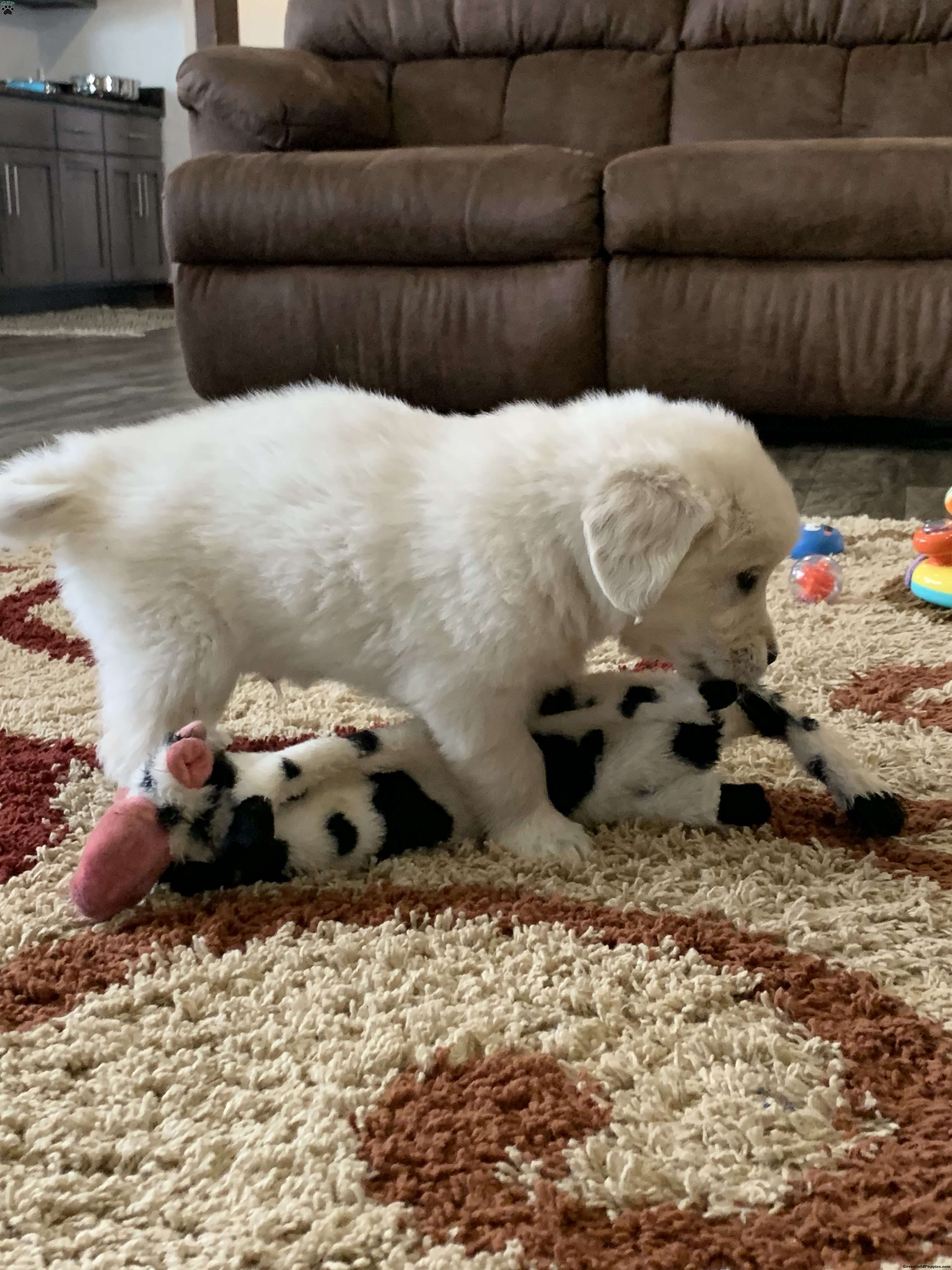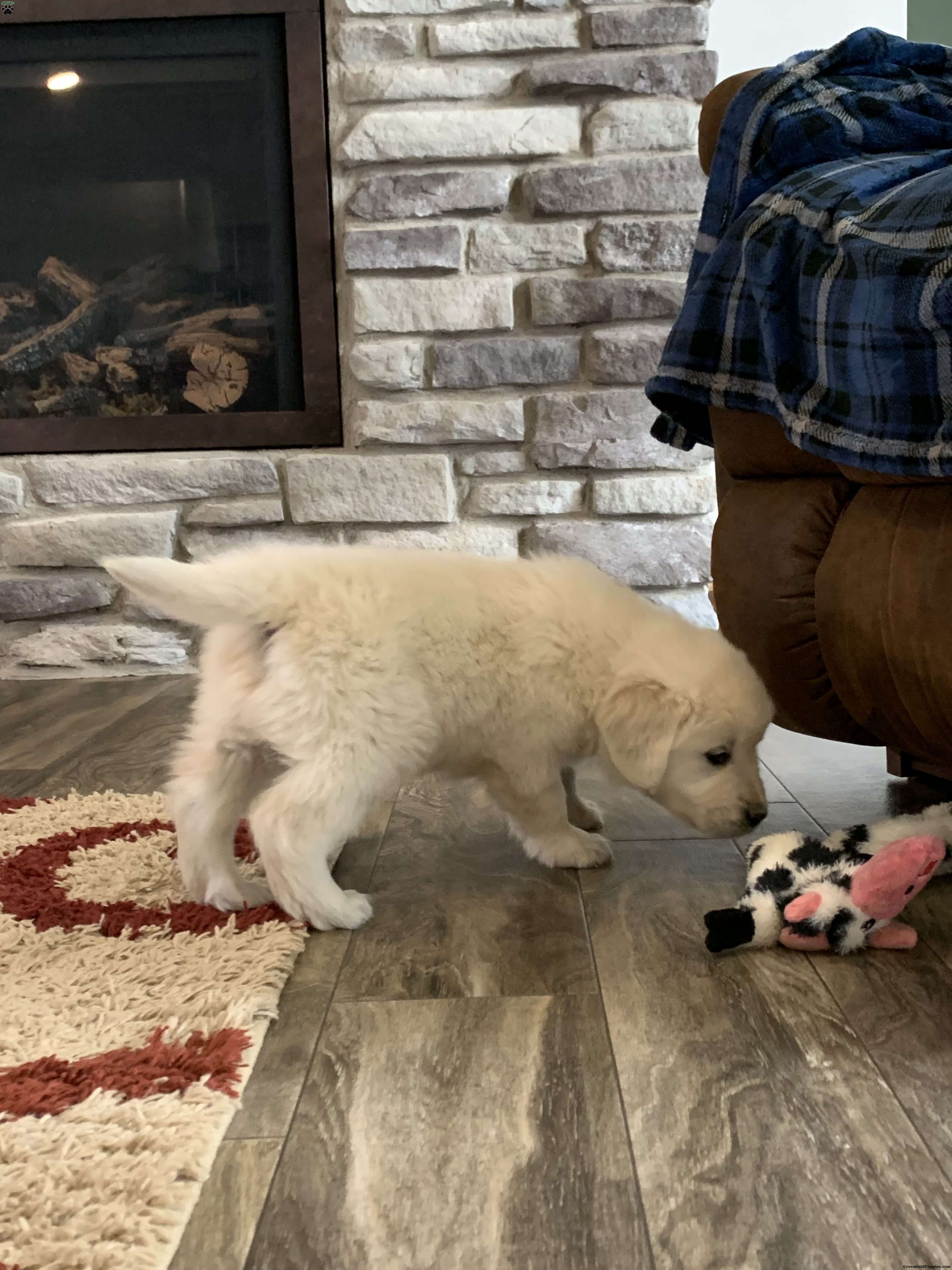 Meet Tommy, one of our adorable English Cream golden retrievers! He is a healthy, happy puppy who is well socialized and loves to play. Our puppies are up to date on vaccines, dewormed and have been vet checked and microchipped. The parents Gypsy and Magnum have been genetically tested and are both clear. We are located in the beautiful rolling hills just outside of Sugarcreek Ohio. We would love for you to come meet us and Tommy in person but if time and distance does not allow that we also offer ground shipping at an additional cost of $300-$400 depending on your location. If you are interested or have any questions please feel free to reach out to us. Thank you!!