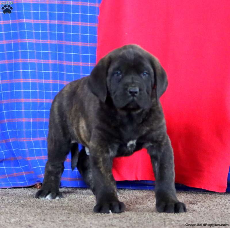Meet Andy! This awesome English Mastiff puppy is vet checked & up to date on shots & wormer. He is registered with the AKC, plus comes with a health guarantee provided by the breeder! Andy is socialized & can’t wait to join in on all the fun at your place!