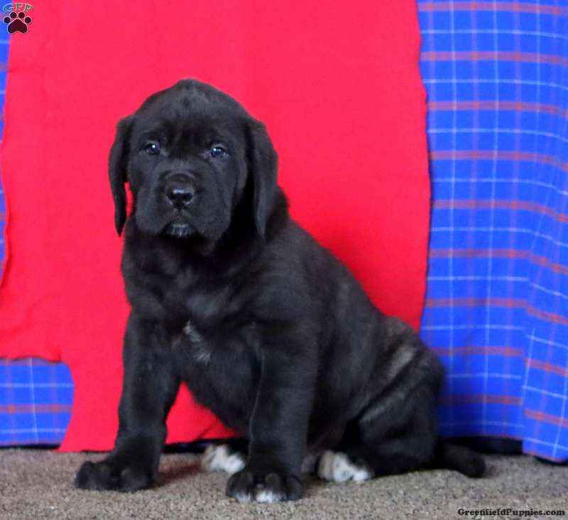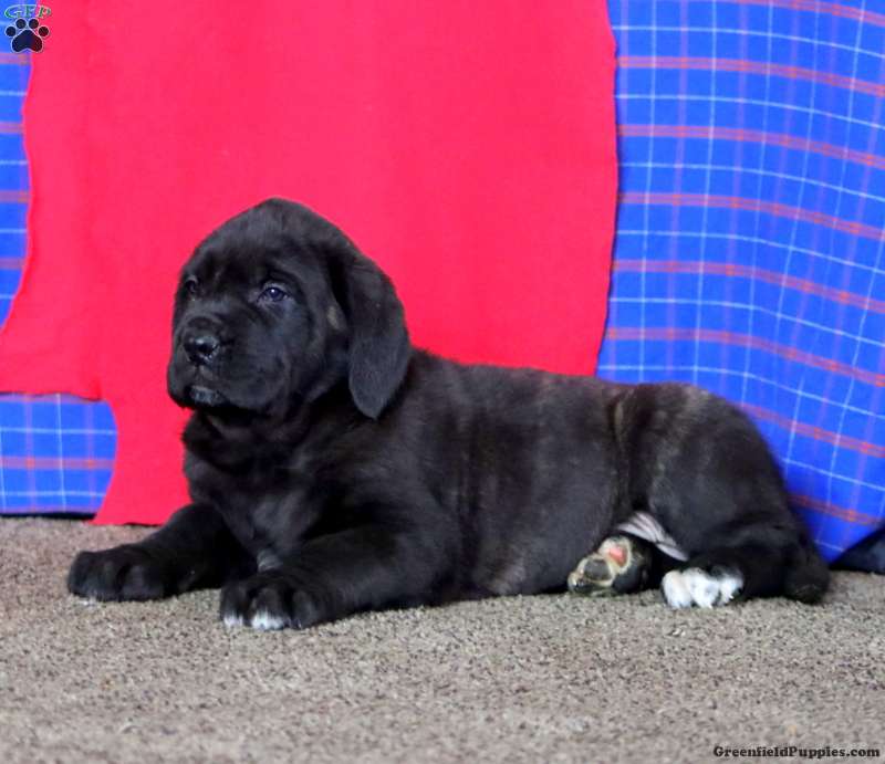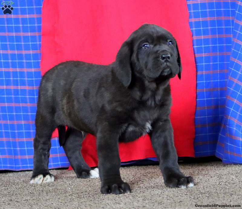 Meet Arnie! This awesome English Mastiff puppy is vet checked & up to date on shots & wormer. He is registered with the AKC, plus comes with a health guarantee provided by the breeder! Arnie is socialized & can’t wait to join in on all the fun at your place!