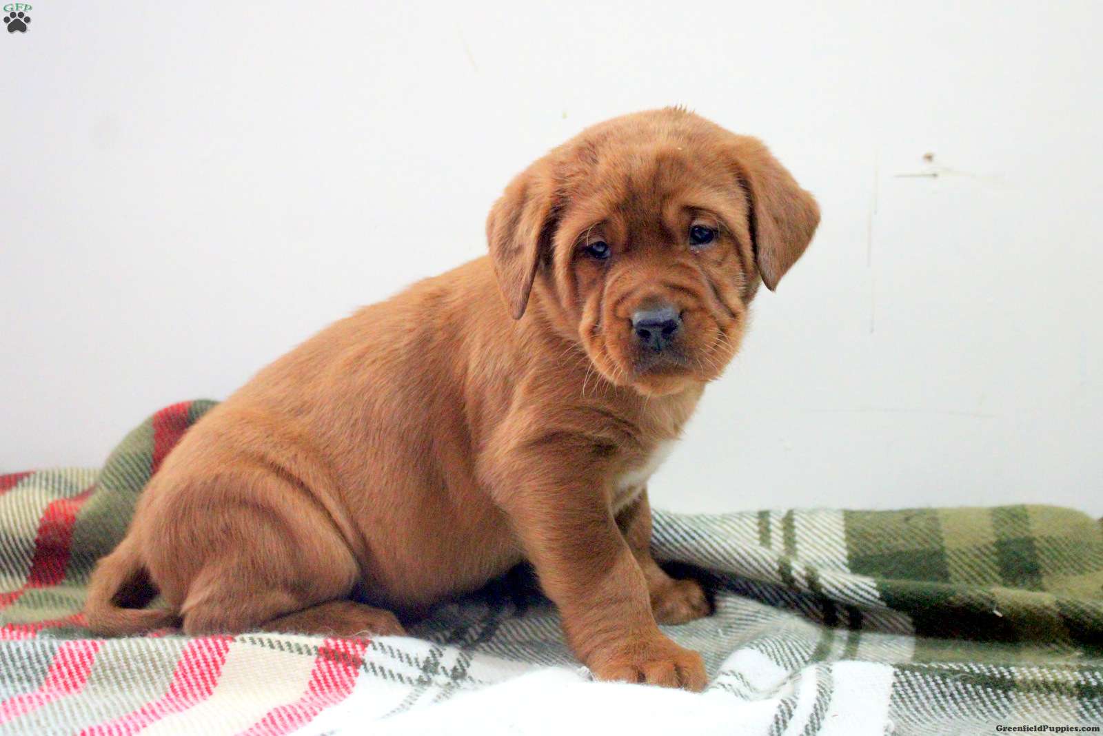 This happy Fox Red Labrador Retriever puppy is sweet tempered and loves to have fun! Damian can be registered with the AKC and comes home with a health guarantee provided by the breeder. This cutie has been seen by a vet and is up to date on shots and de-wormer. Damian is socialized, family raised with children, and ready to meet his forever family!