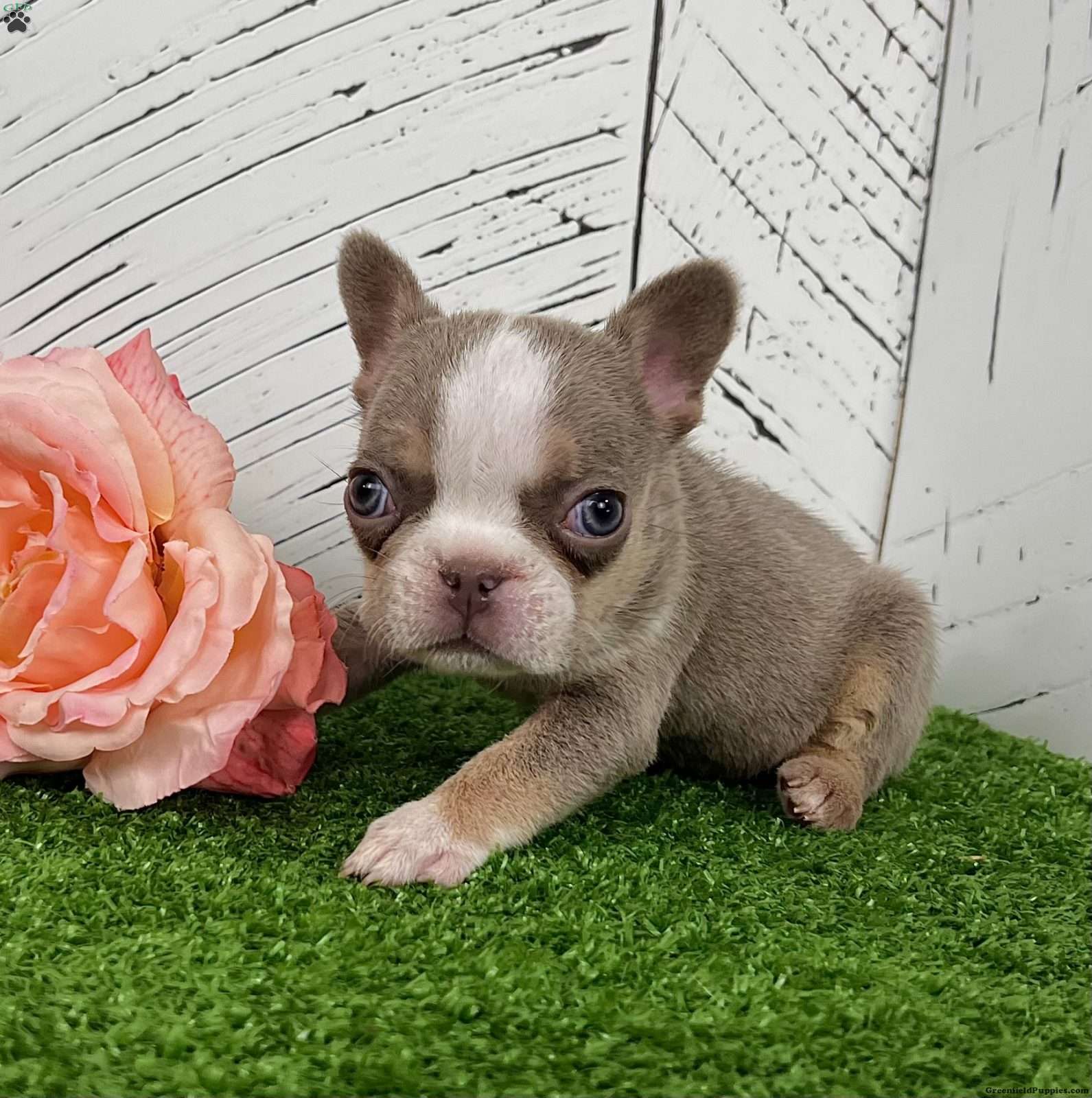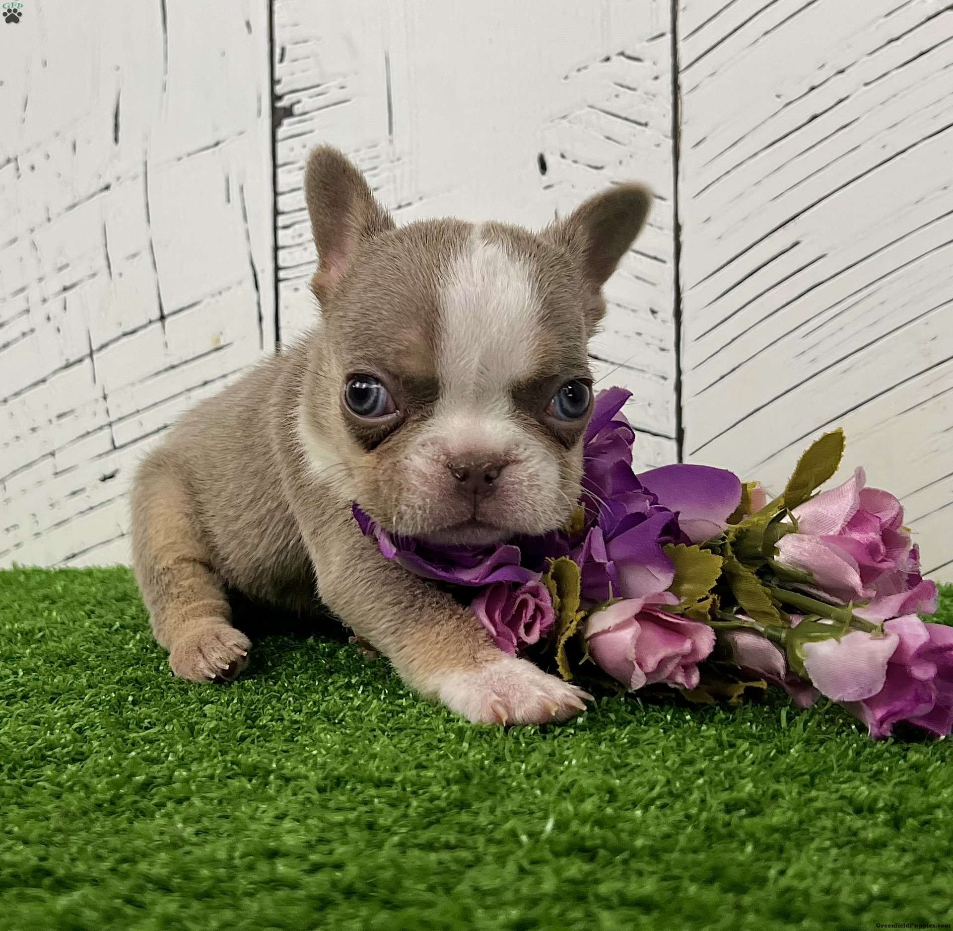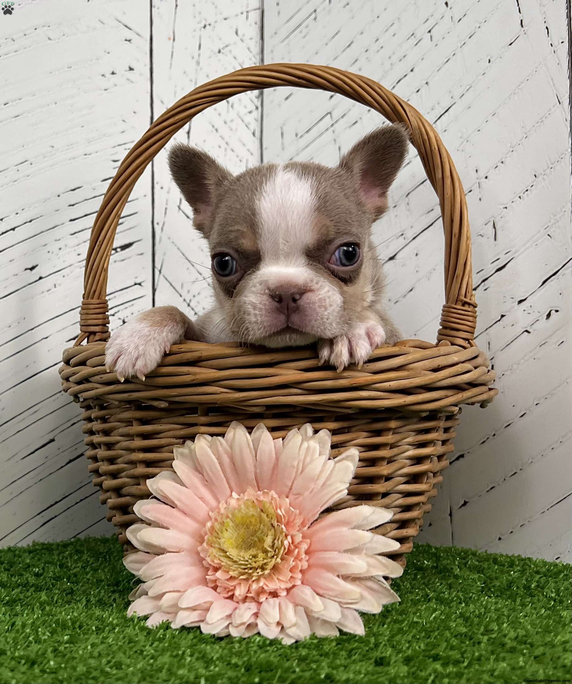 Barbie — A Rare Newshade Husky Isabella Frenchie With Beautiful Blue-Green Eyes! Say hello to Barbie, an enchanting purebred AKC French Bulldog with a soft blend of Isabella, tan, and white (newshade husky) coloring. Her pastel coat pairs perfectly with her stunning blue-green eyes, giving her a bright, expressive look that makes her truly unforgettable. Barbie has a sweet, observant personality and loves interacting with people. Raised by our family, she’s been well socialized, and is off to an excellent start. Barbie’s Details: • Breed: Purebred French Bulldog • Color: Isabella Tan & White (Newshade Husky) • Eyes: Blue-Green • Birthdate: October 25, 2025 • Registration: AKC Registered • Health: Up to date on shots & dewormings • Extras: Microchipped Written Health Guarantee • Raised: Family raised and well socialized Barbie is a gorgeous little Frenchie with rare coloring, a soft expression, and a loving temperament — perfect for anyone looking for a standout companion with exceptional genetics. Delivery available right to your door! Call or text to make Barbie yours