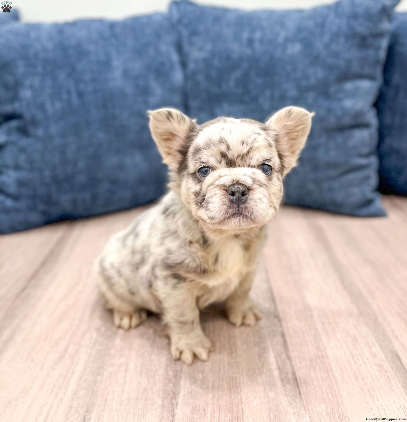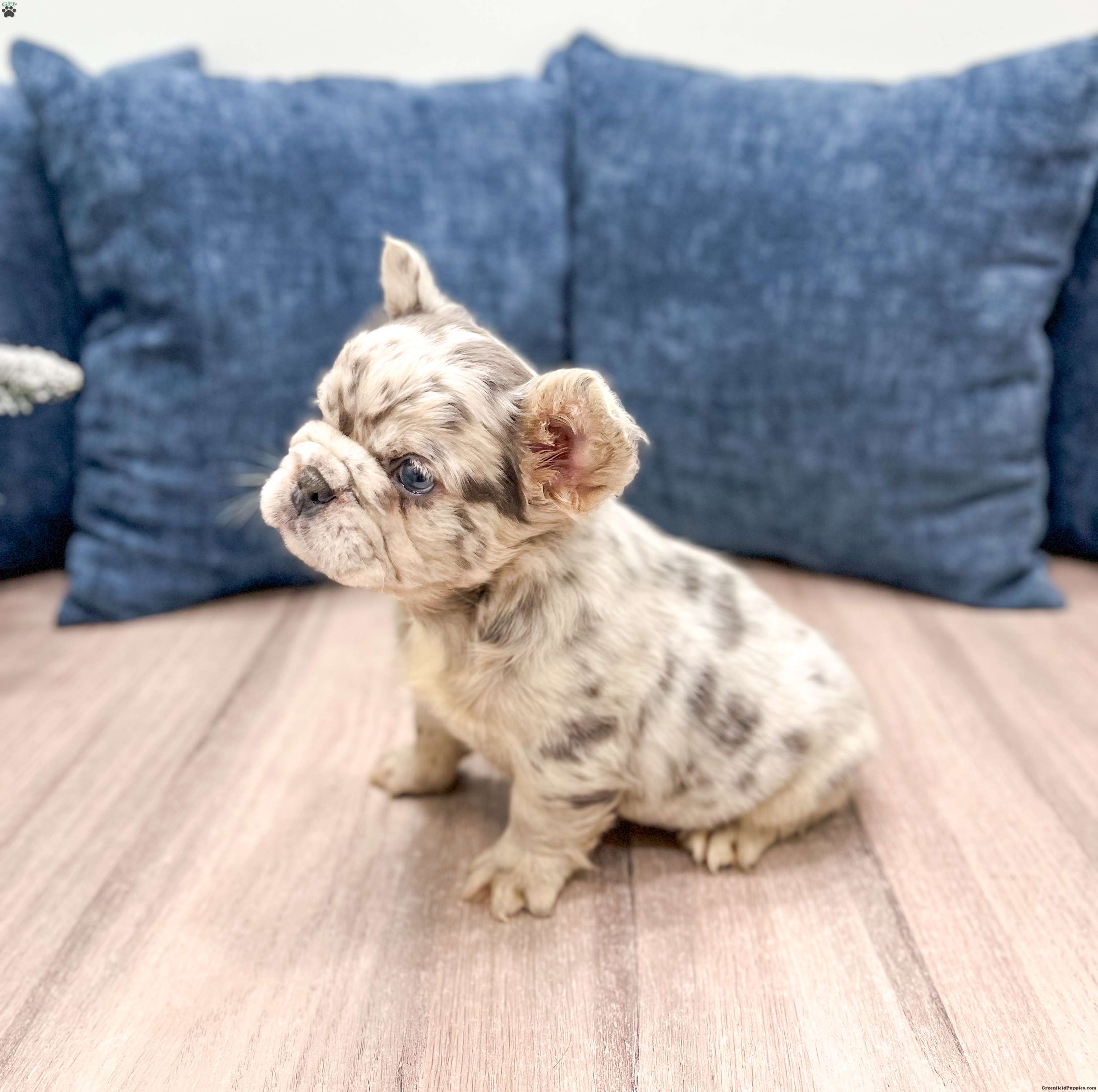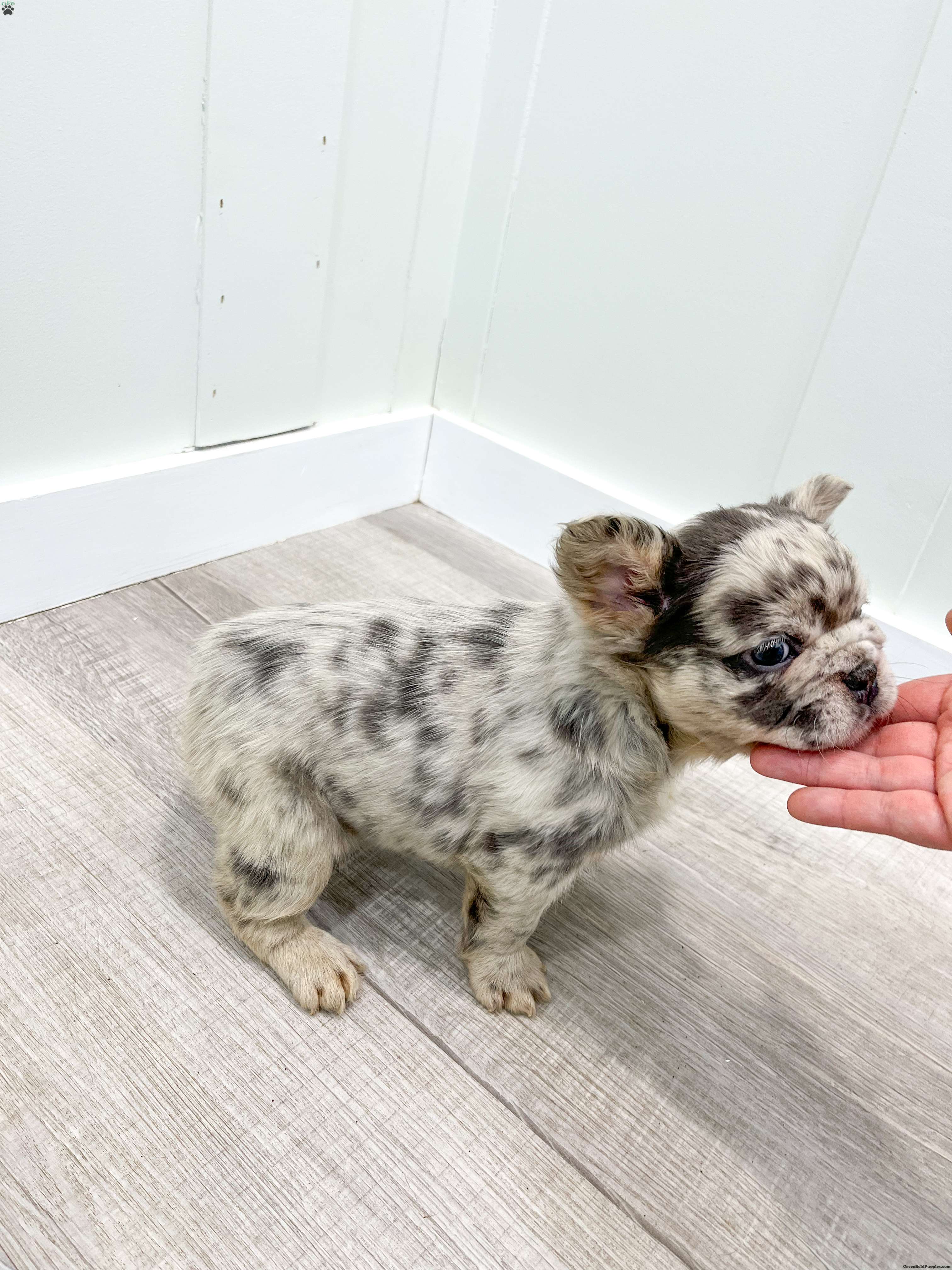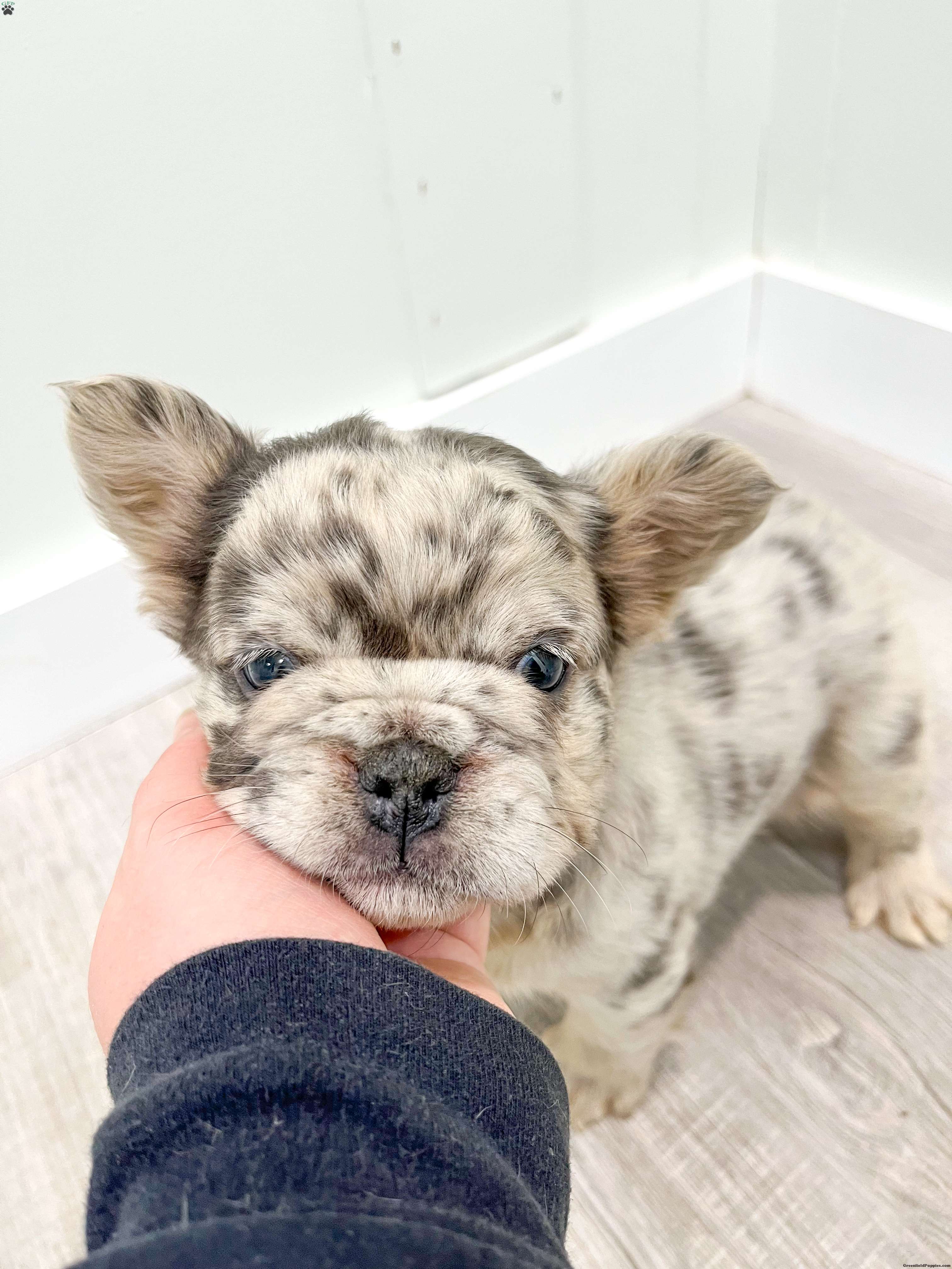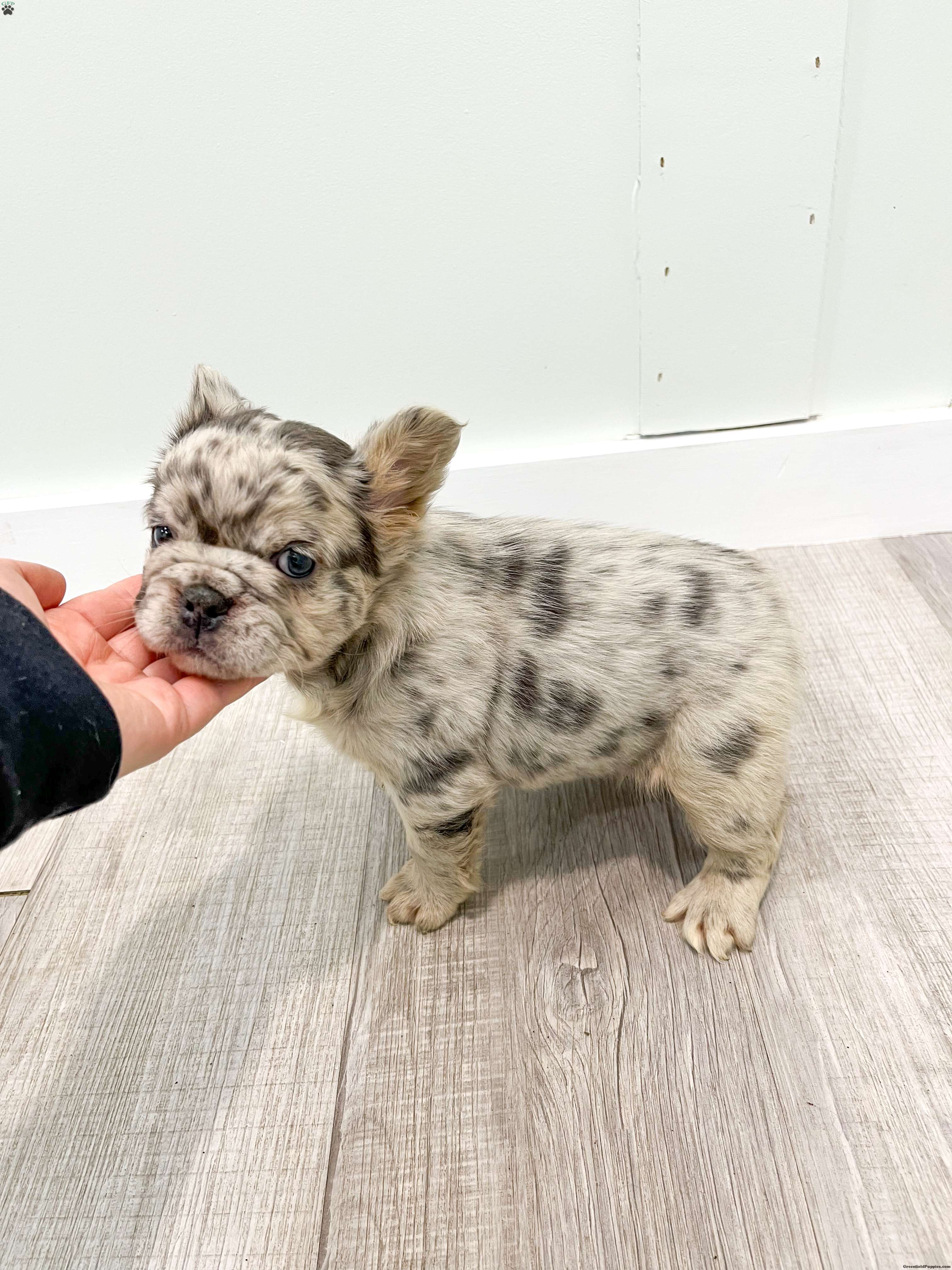 Say hello to Callie, a gorgeous purebred Blue Merle fluffy French Bulldog with the sweetest face and blue eyes and a soft, plush coat that makes her absolutely irresistible! her color, structure, and fluffy coat make her a standout puppy with exceptional quality. Raised in a loving family home and well socialized has a calm, cuddly personality and loves being held. she’s already used to people and daily handling, making her a wonderful fit for families or anyone wanting a high-quality Frenchie companion. Ready to add Callie to your home? Contact us today!