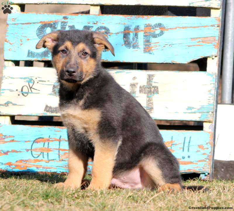Bubbles is a stately and lovable German Shepherd puppy available to a forever family. This sturdy pup is socialized and ready to be your adoring companion! Vet checked and up to date on shots and de-wormer, Bubbles comes home with a 30 day health guarantee and an extended genetic health guarantee, both provided by the breeders.