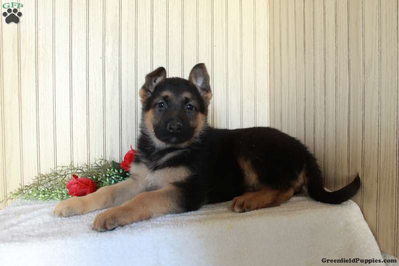 Joanie is a laid back German Shepherd puppy who can be registered with the AKC. This fluffy girl is socialized and ready to be your loyal companion! Joanie comes home with a health guarantee provided by the breeder, plus has been seen by a vet and is up to date on shots and de-wormer.