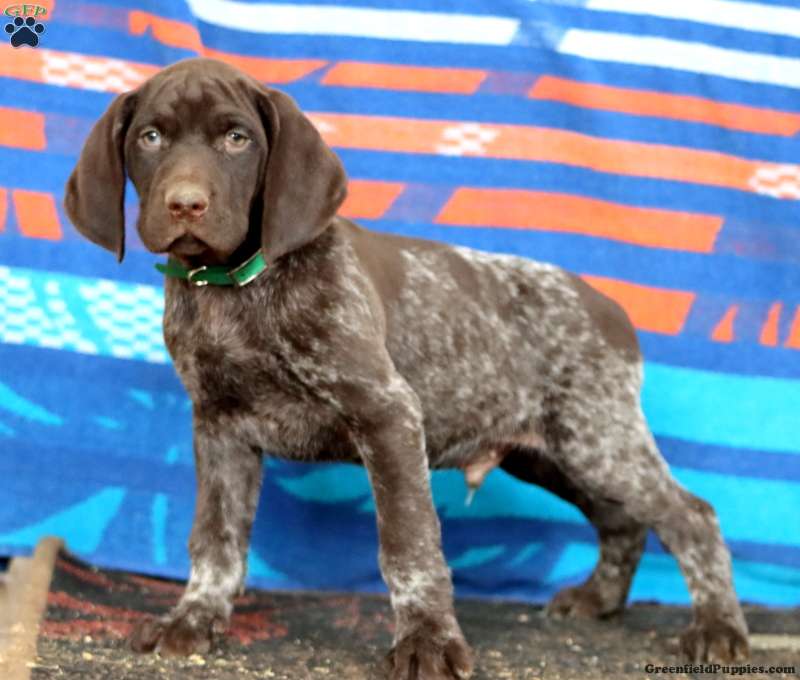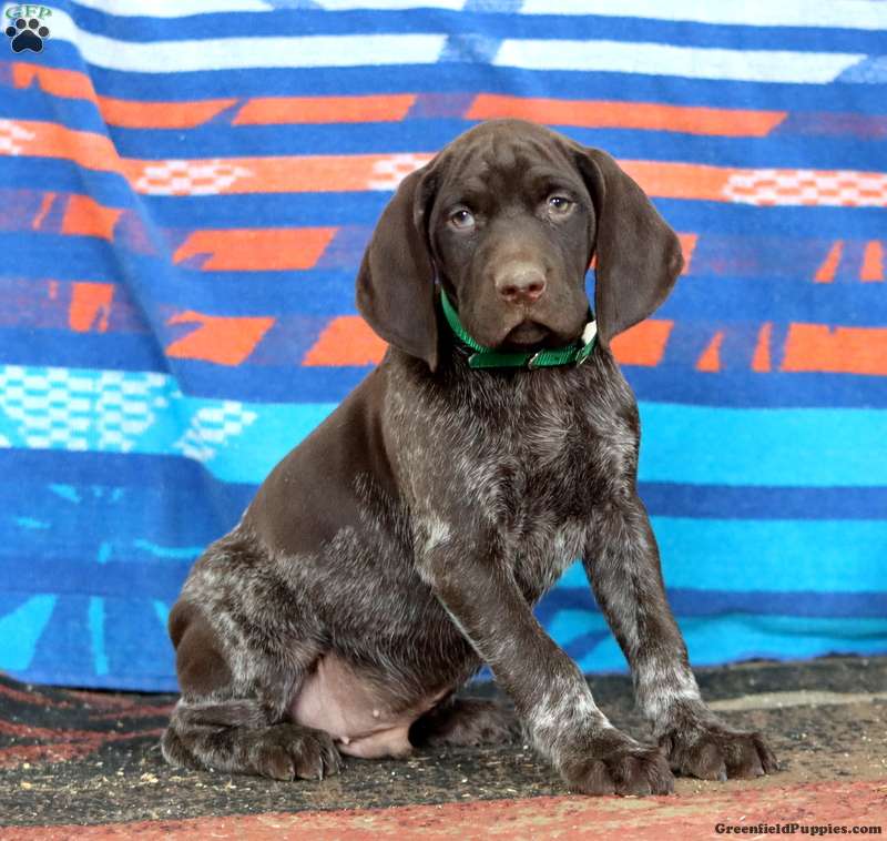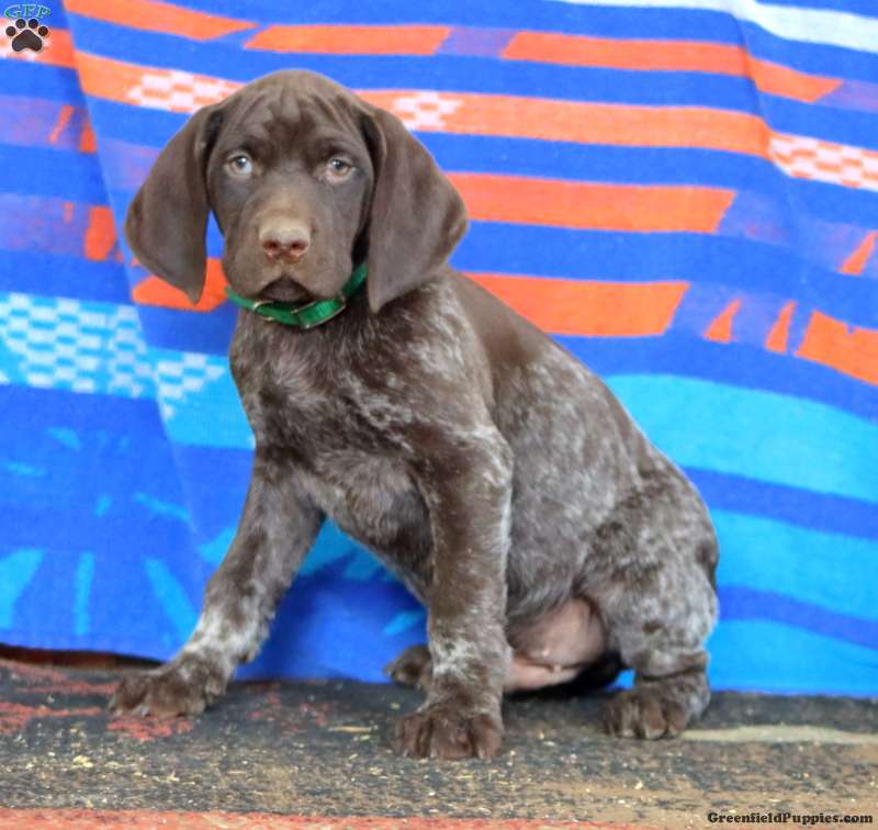 This beautiful German Shorthaired Pointer puppy is smart and loves to explore! Kayson can be registered with the AKC and comes home with a 30 day health guarantee and an extended genetic health guarantee, both provided by the breeders. This cutie has been seen by a vet and is up to date on shots and de-wormer. Kayson is socialized and ready to meet you!
