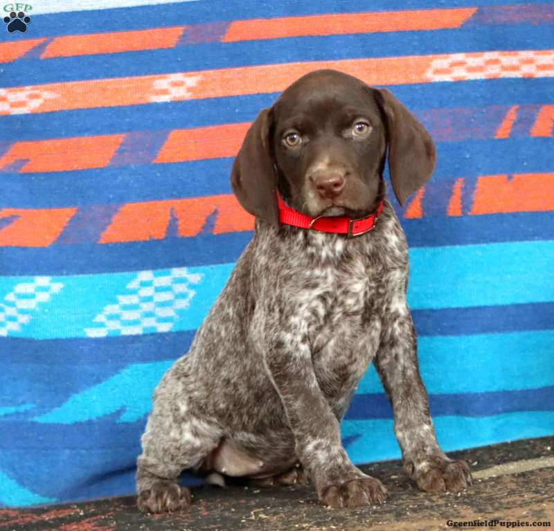 This beautiful German Shorthaired Pointer puppy is smart and loves to explore! Kendi can be registered with the AKC and comes home with a 30 day health guarantee and an extended genetic health guarantee, both provided by the breeders. This cutie has been seen by a vet and is up to date on shots and de-wormer. Kendi is socialized and ready to meet you!