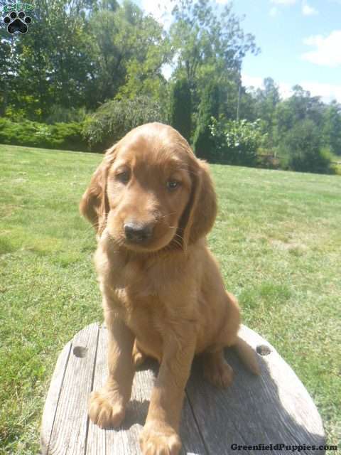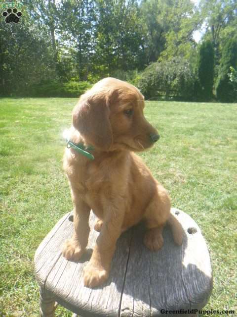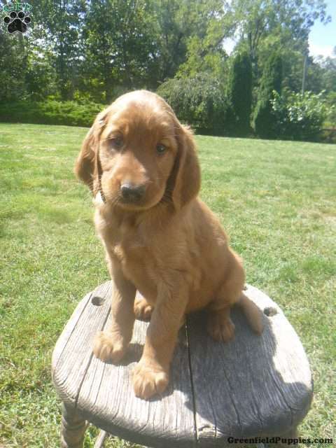 Welcome to our world of Golden Irish puppies! Many of our puppies are now working dogs , either as companion and/or therapy dogs. We love how they are gentle like the golden yet keen like the setter.