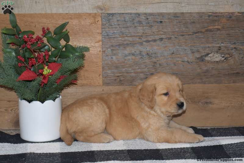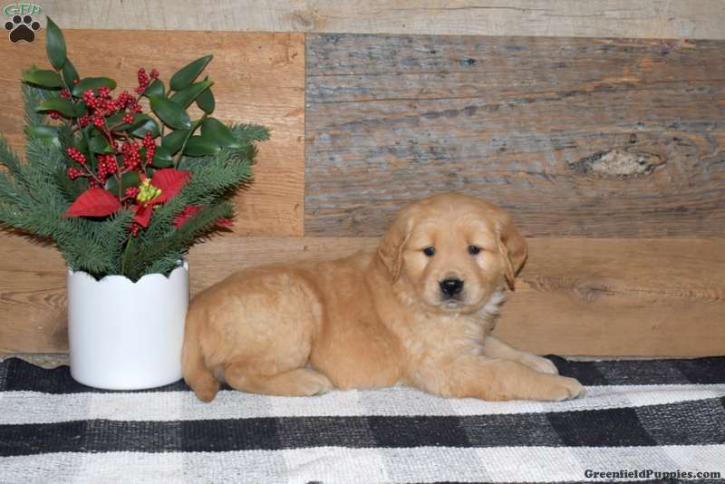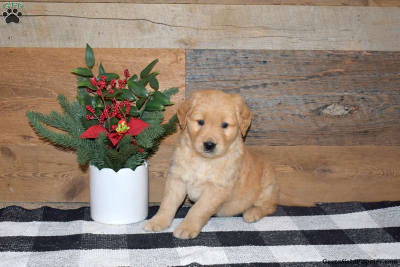 Fiddle is a cute and cuddly Golden Retriever puppy who loves to play and can be registered with the ACA. This wonderful pup comes home with a health guarantee provided by the breeder, plus has been seen by a vet and is up to date on shots and de-wormer. Fiddle is socialized, family raised with children, and ready to meet you!