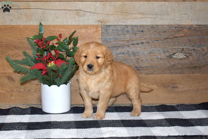 Flossy is a cute and cuddly Golden Retriever puppy who loves to play and can be registered with the ACA. This wonderful pup comes home with a health guarantee provided by the breeder, plus has been seen by a vet and is up to date on shots and de-wormer. Flossy is socialized, family raised with children, and ready to meet you!