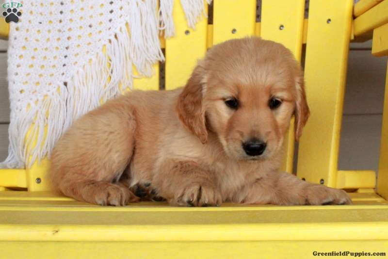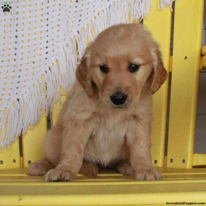 This cuddly Golden Retriever puppy is friendly and such a cutie-pie! Georgia can be registered with the AKC and comes home with a health guarantee provided by the breeder. This gentle girl has been seen by a vet and is up to date on shots and de-wormer. Georgia is socialized and ready to be the best addition to her forever family!