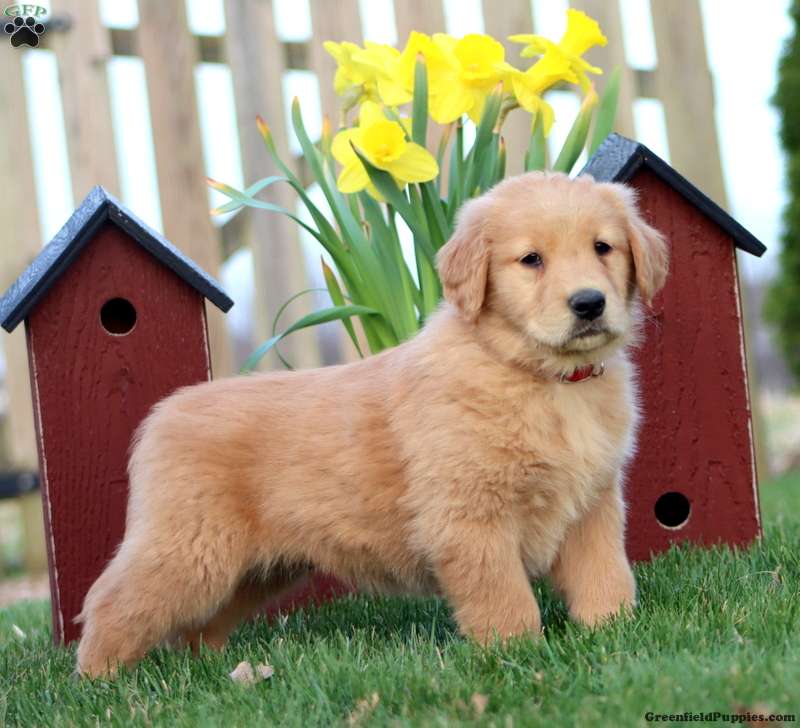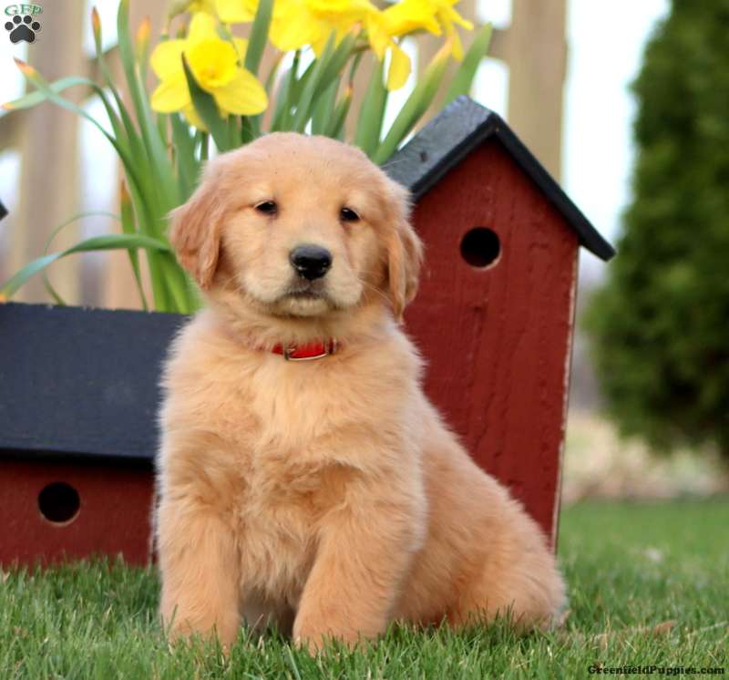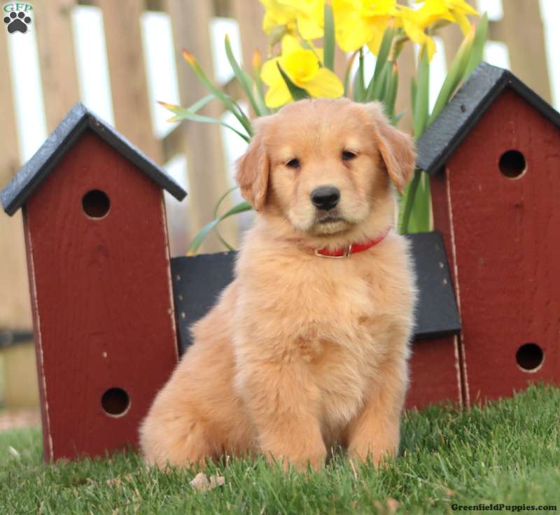 Here is Reeces! This smart and friendly Golden Retriever puppy could be yours! Reeces is socialized, family raised, and ready to get to know his forever family. This lovely pup can be registered with the AKC and comes home with a 30 day health guarantee and an extended genetic health guarantee, both provided by the breeder. Reeces has also been seen by a vet and is up to date on shots and de-wormer. Come and meet this happy puppy!