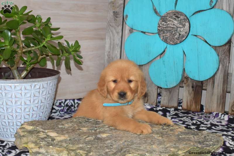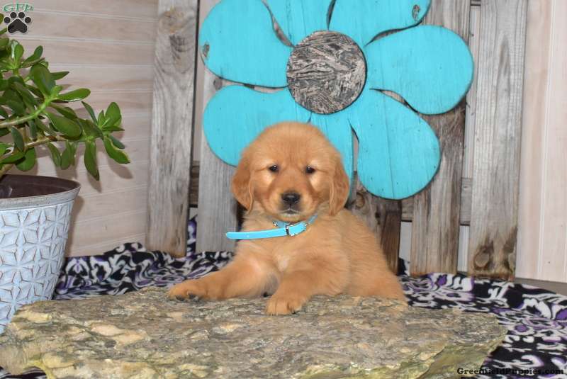 Sesame is a happy Golden Retriever puppy who loves to play and can be registered with the AKC. This cutie comes home with a health guarantee provided by the breeder, plus has been seen by a vet and is up to date on shots and de-wormer. Sesame is socialized, family raised with children, and ready to be the best addition to his forever family!