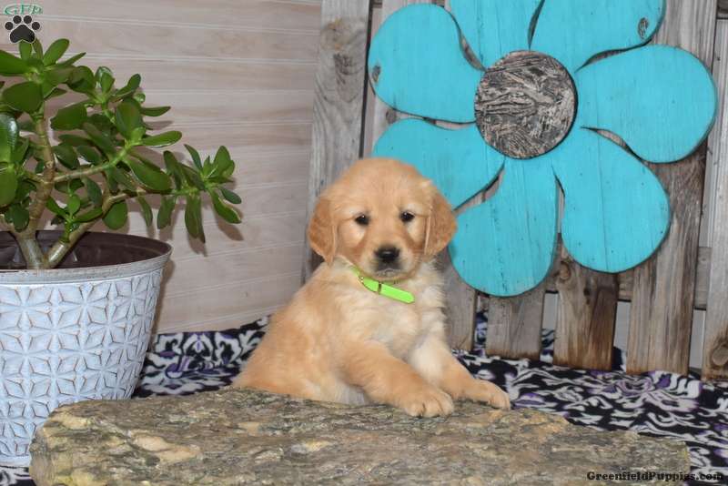 Sky is a happy Golden Retriever puppy who loves to play and can be registered with the AKC. This cutie comes home with a health guarantee provided by the breeder, plus has been seen by a vet and is up to date on shots and de-wormer. Sky is socialized, family raised with children, and ready to be the best addition to her forever family!