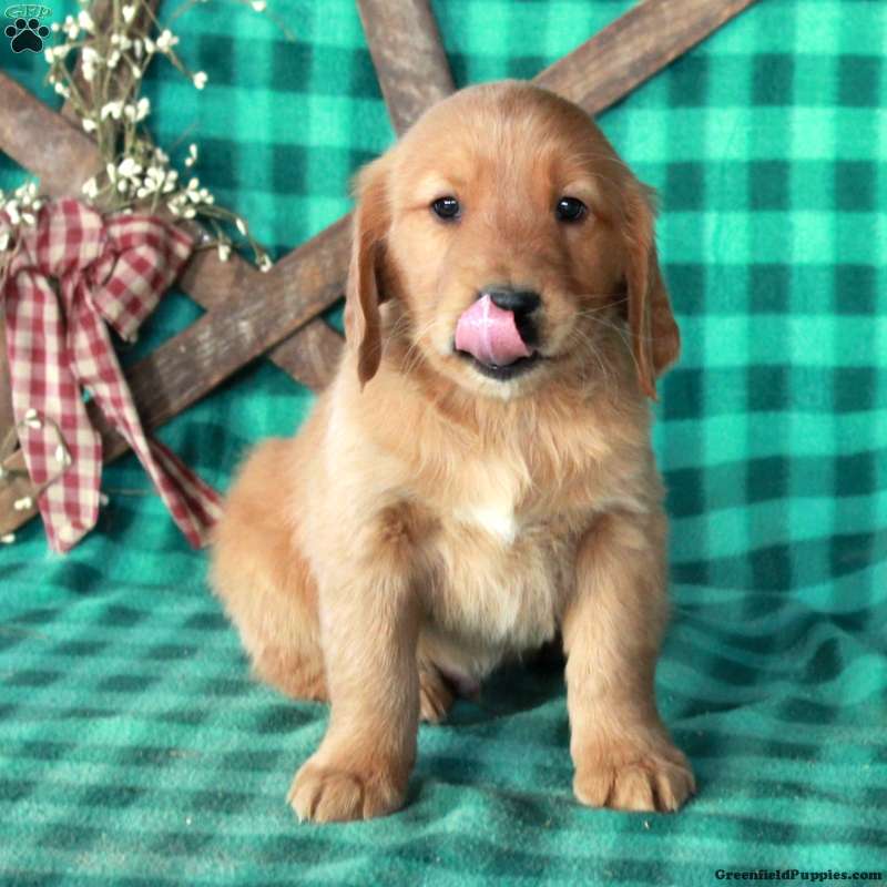 Stitch is a laid back and lovable Golden Retriever puppy available to a forever family. This friendly boy can be registered with the AKC and comes home with a 30 day health guarantee and an extended genetic health guarantee, both provided by the breeders. Stitch has been seen by a vet and is up to date on shots and de-wormer. This cutie is socialized and spending time around children, getting ready to meet you!