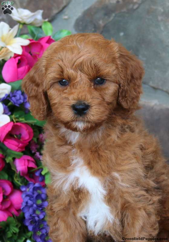 Trea is a happy Goldendoodle puppy who loves to play. This sweet boy comes home with a 30 day health guarantee as well as an extended genetic health guarantee, both provided by the breeder. Trea has been seen by a vet and is up to date on shots and de-wormer. This fun pup is socialized and ready to be your favorite sidekick!