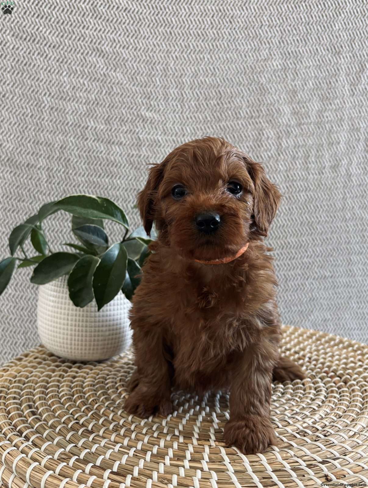 We are excited to introduce Sugar , our adorable F1 Mini Irish Doodle puppy—sweet, playful, and ready to find her forever family!