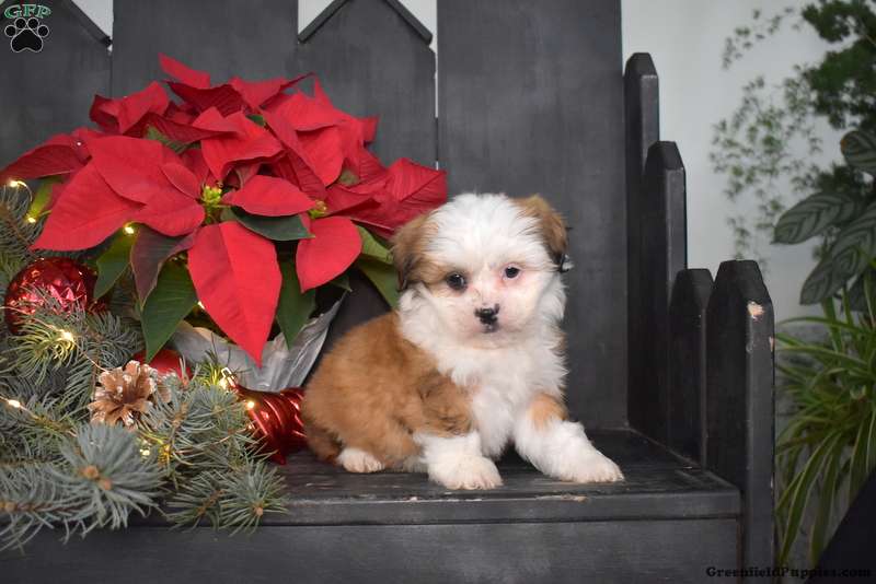 Jolly is a soft and fluffy Mal-Shi puppy available to a forever family! This playful and sweet natured little one is socialized, family raised with children, and ready to be adored by you! Jolly comes home with a health guarantee provided by the breeder, plus has been seen by a vet and is up to date on shots and de-wormer.