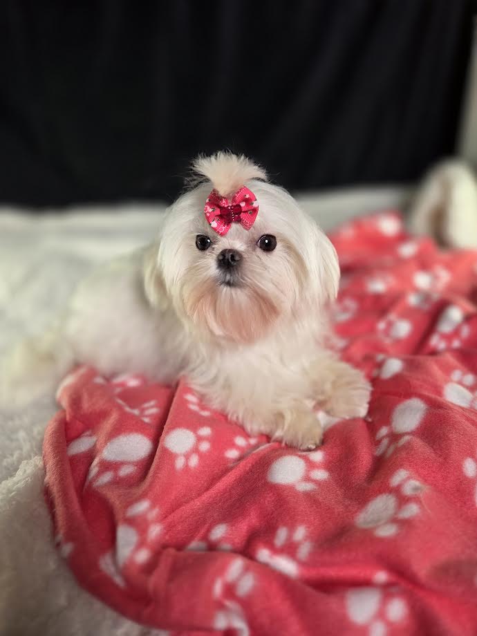 With highly sought-after Korean lines, Callie has that signature teddy bear face. Soft, rounded features, shorter muzzles and a true doll-like expression define a premium Maltese! This look is incredibly coveted and rarely available, making this a very special puppy.