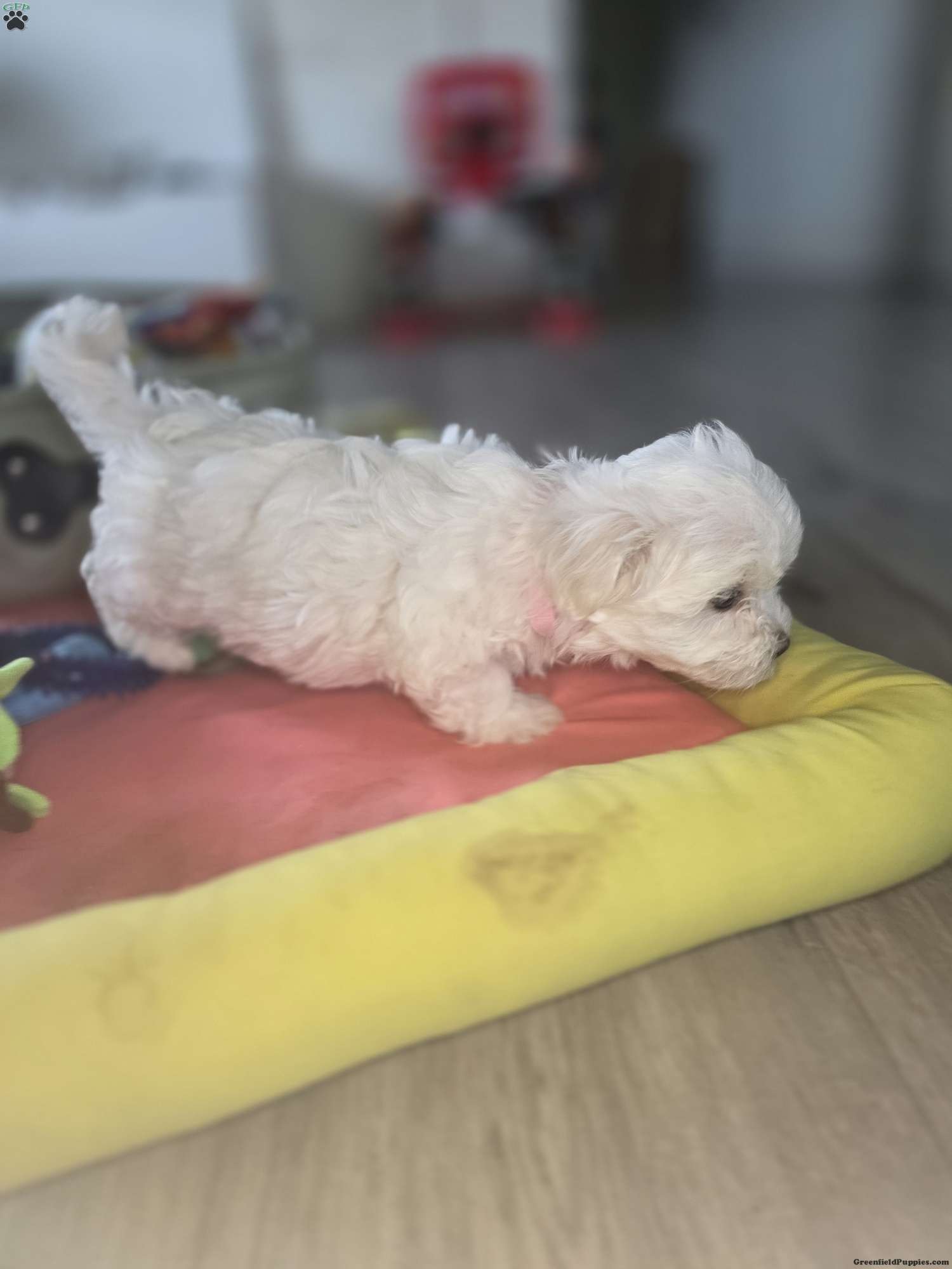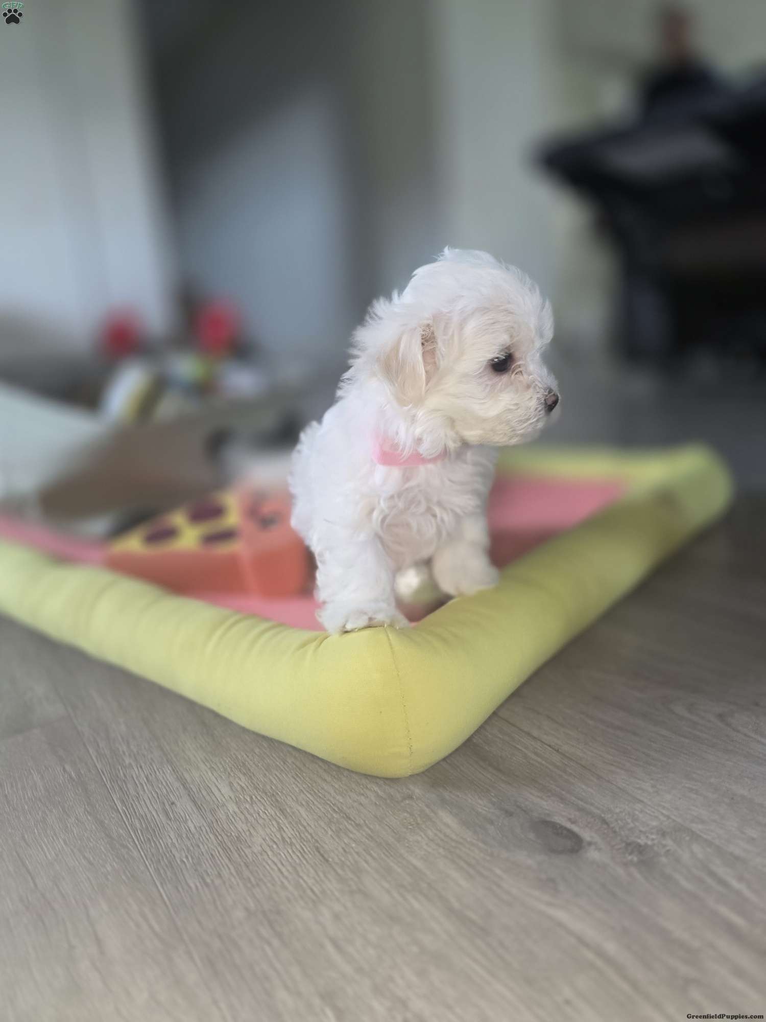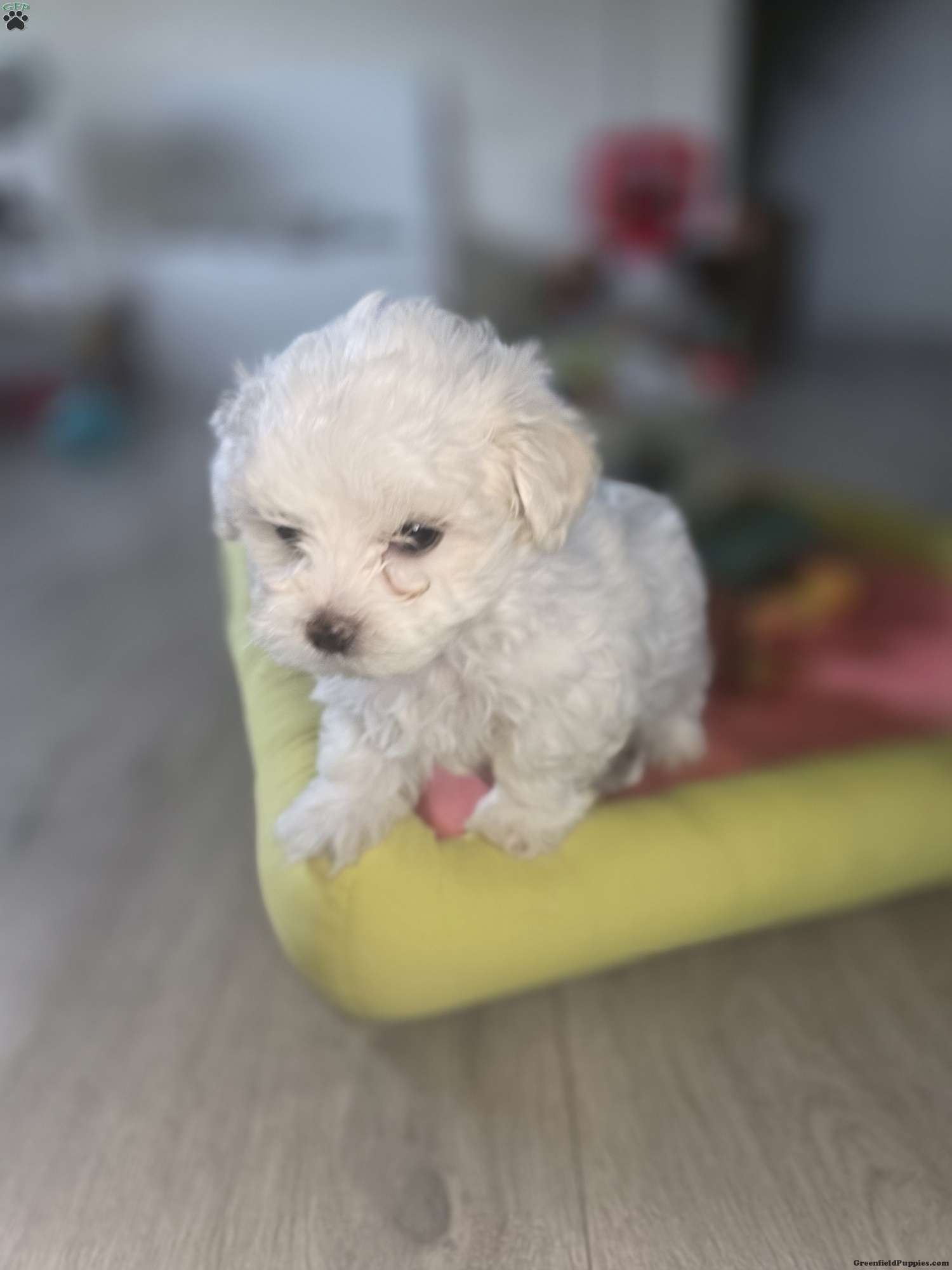 This precious little girl is full of charm and sweetness. She is playful, curious, and loves attention. Her small size makes her the perfect cuddle companion, and she enjoys both playtime and relaxing in your arms. She has a gentle, loving temperament and has been raised in a warm, family environment where she receives daily socialization.