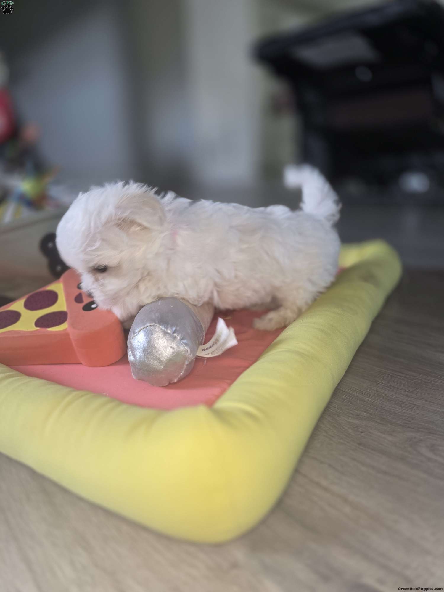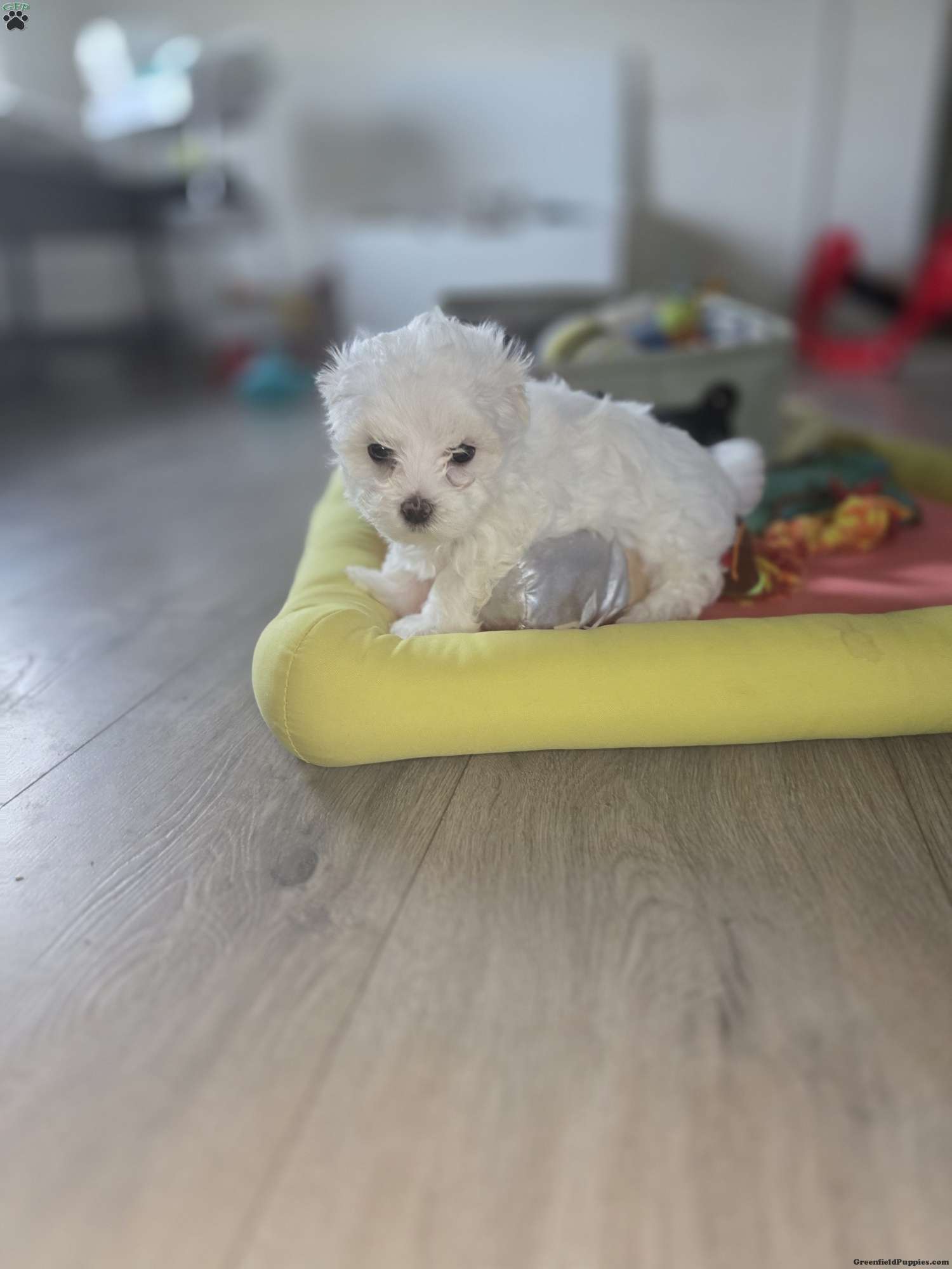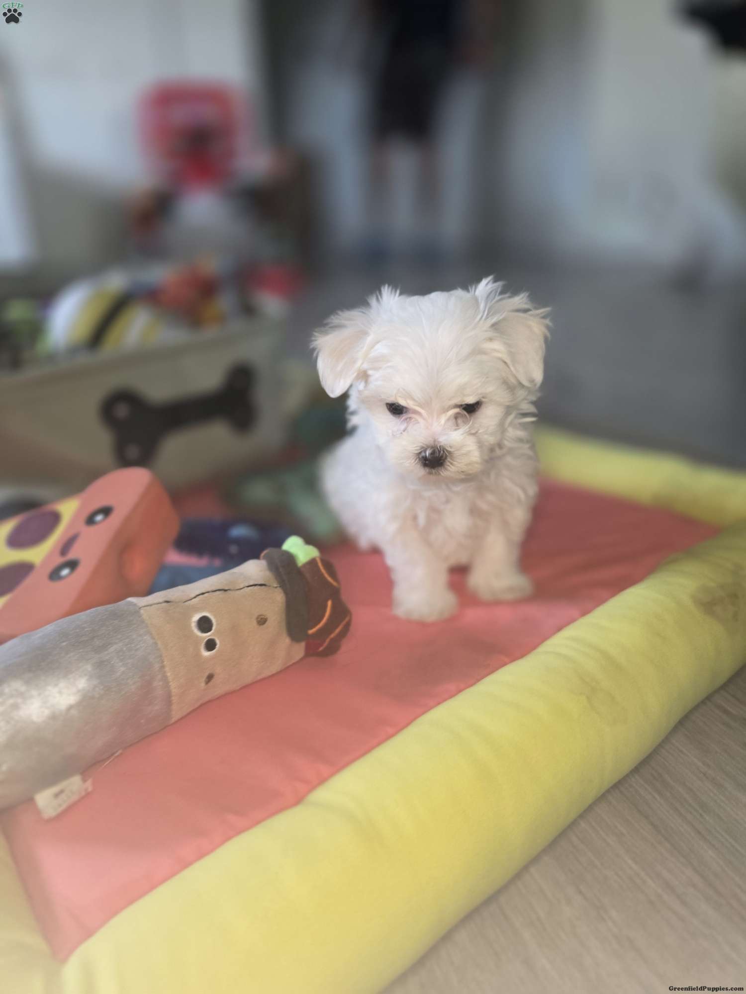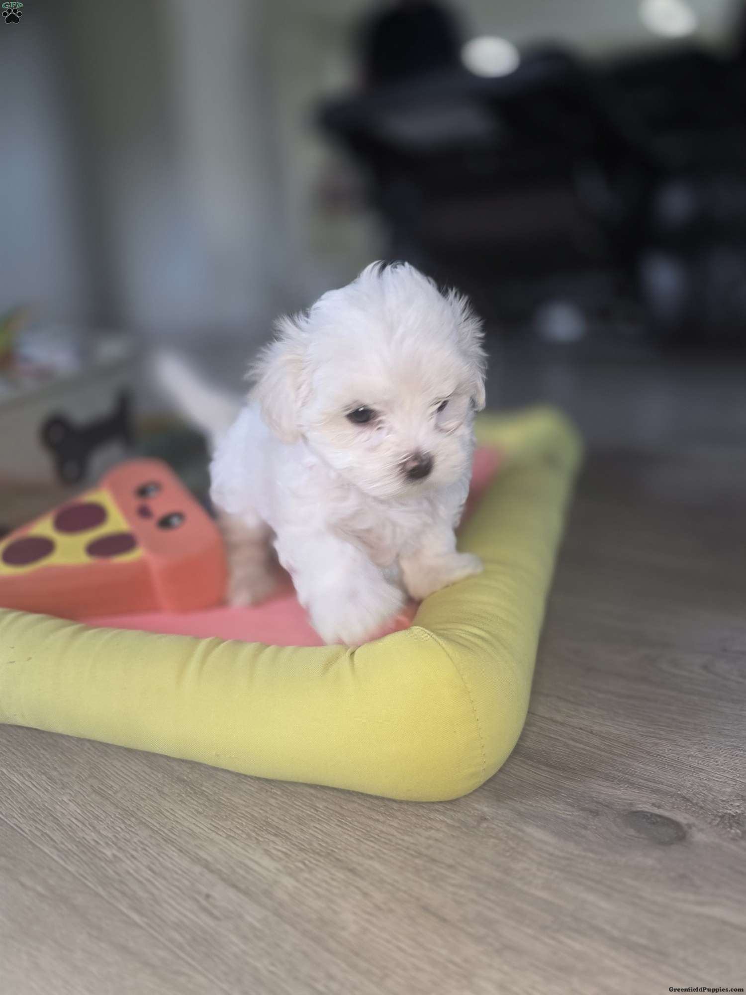 This precious little girl is full of charm and sweetness. She is playful, curious, and loves attention. Her small size makes her the perfect cuddle companion, and she enjoys both playtime and relaxing in your arms. She has a gentle, loving temperament and has been raised in a warm, family environment where she receives daily socialization.