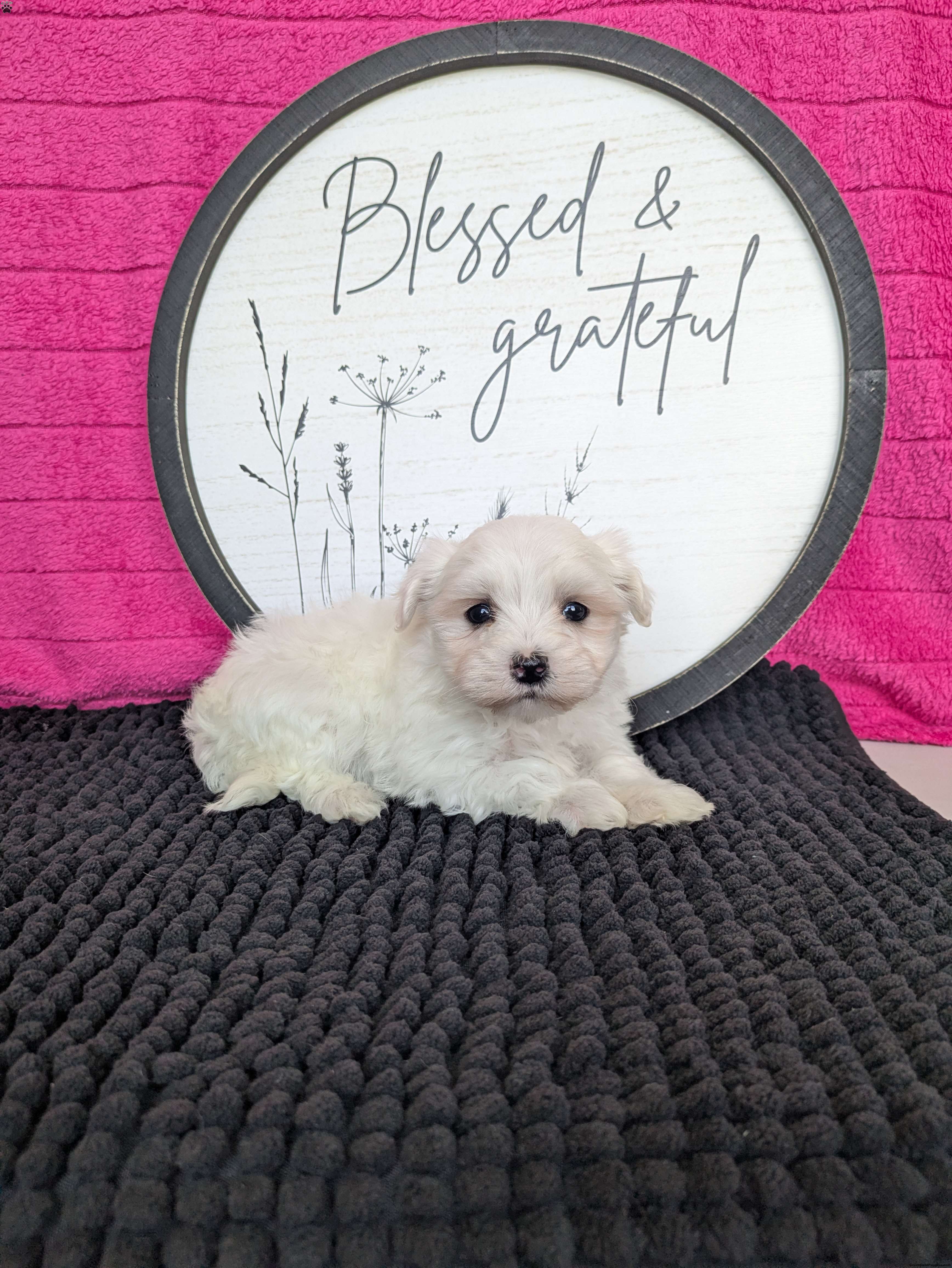 Zoey is a very sweet little Maltese puppy! She loves to play an cuddle she is very well socialized! Zoey is vet checked, micro-chipped, an up to date on her shots and dewormer! To find out more about this sweetheart call Katie today!