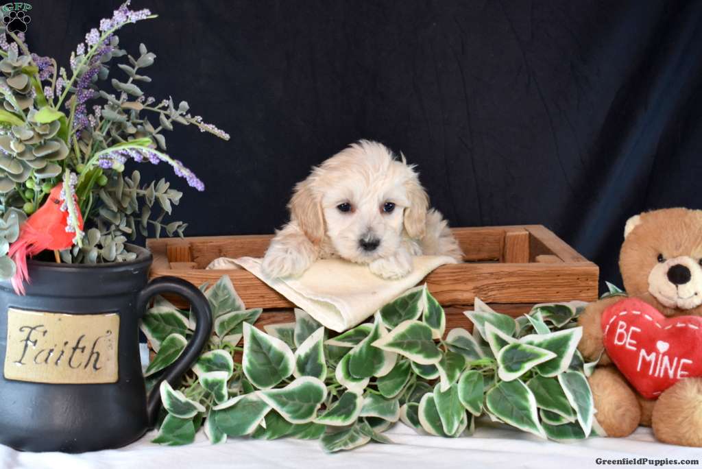 This little Maltipoo puppy is so precious! Toby is playful and sweet. This cutie is family raised, socialized, and ready to meet you! Toby will come home with a 30 day health guarantee as well as an extended genetic health guarantee, both provided by the breeder. This lovable boy has also been seen by a vet and is up to date on shots and de-wormer.