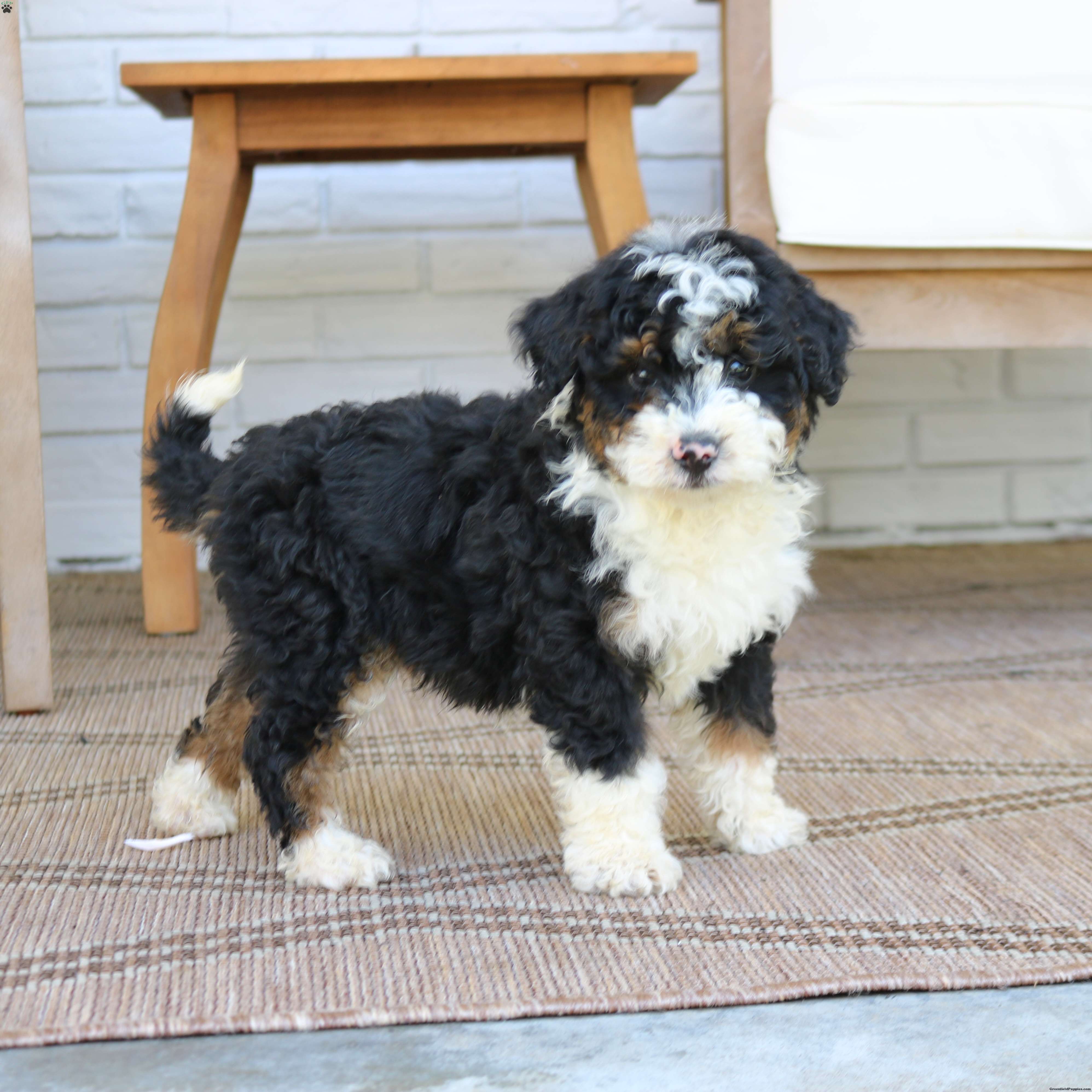 Baxter is an adorable tri colored Bernedoodle looking for his forever home. He has the sweetest, friendly personality and loves to cuddle. He loves to play with my 2 young children and is very loved by them. Baxter is vet checked, dewormed, vaccinated, and  comes with a one year genetic health guarantee. To meet this little cutey call or text Casondra Lapp
