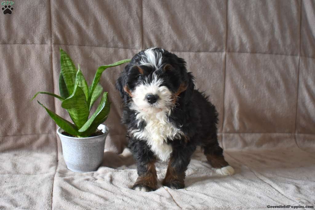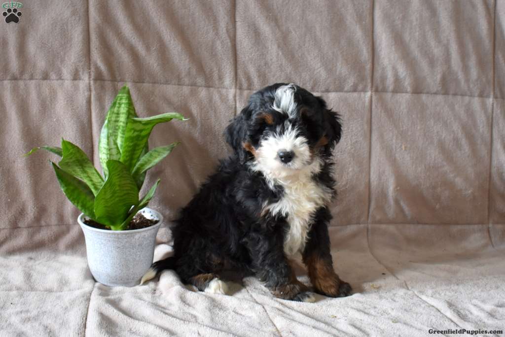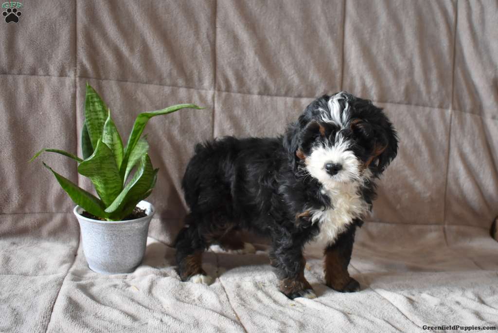 Darla is a pretty Miniature Bernedoodle puppy available to a forever family. This sweet girl is socialized, family raised with children, and will love being by your side! Darla has been seen by a vet and is up to date on shots and de-wormer. This cutie comes home with a 30 day health guarantee plus an extended genetic health guarantee, both provided by the breeder.
