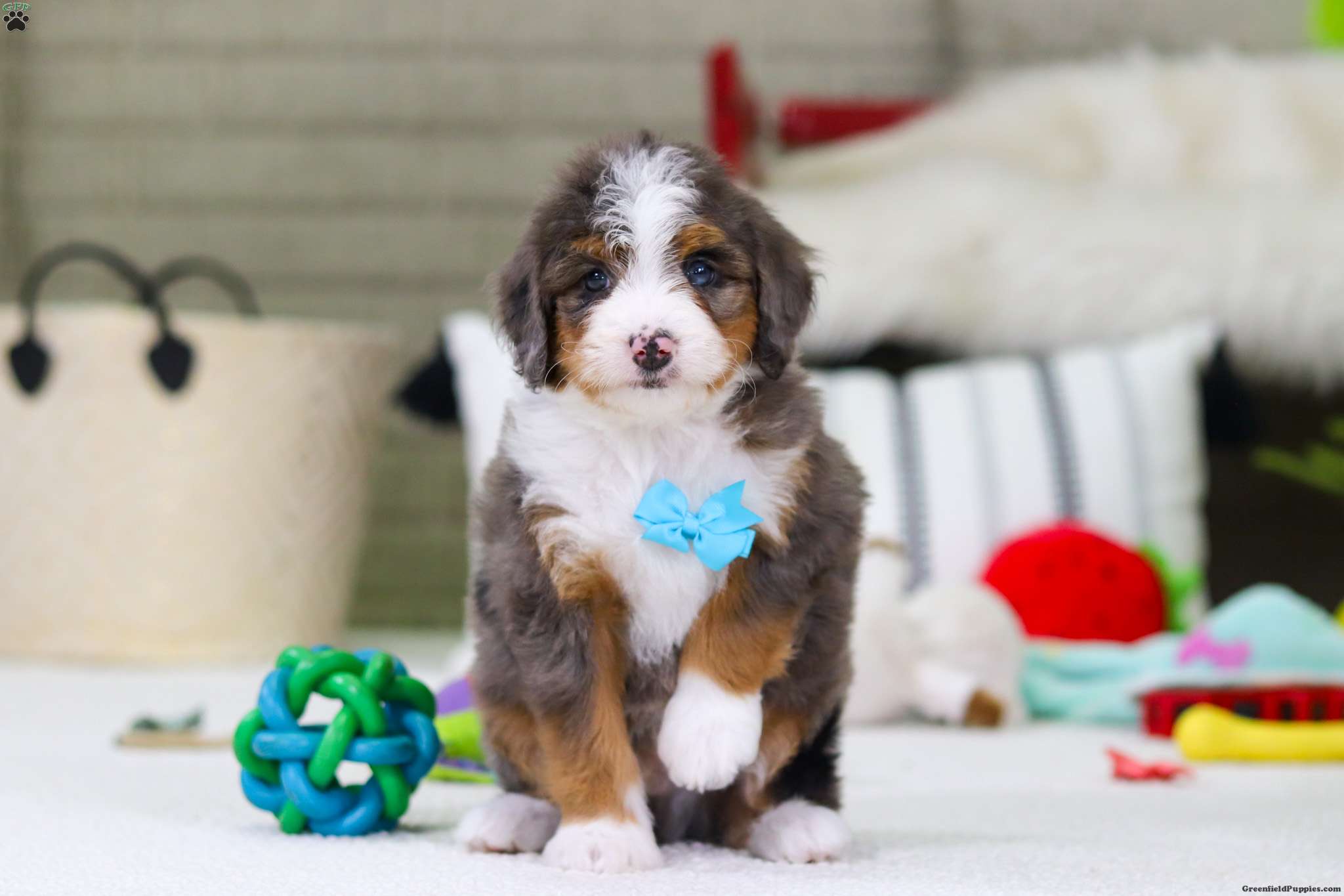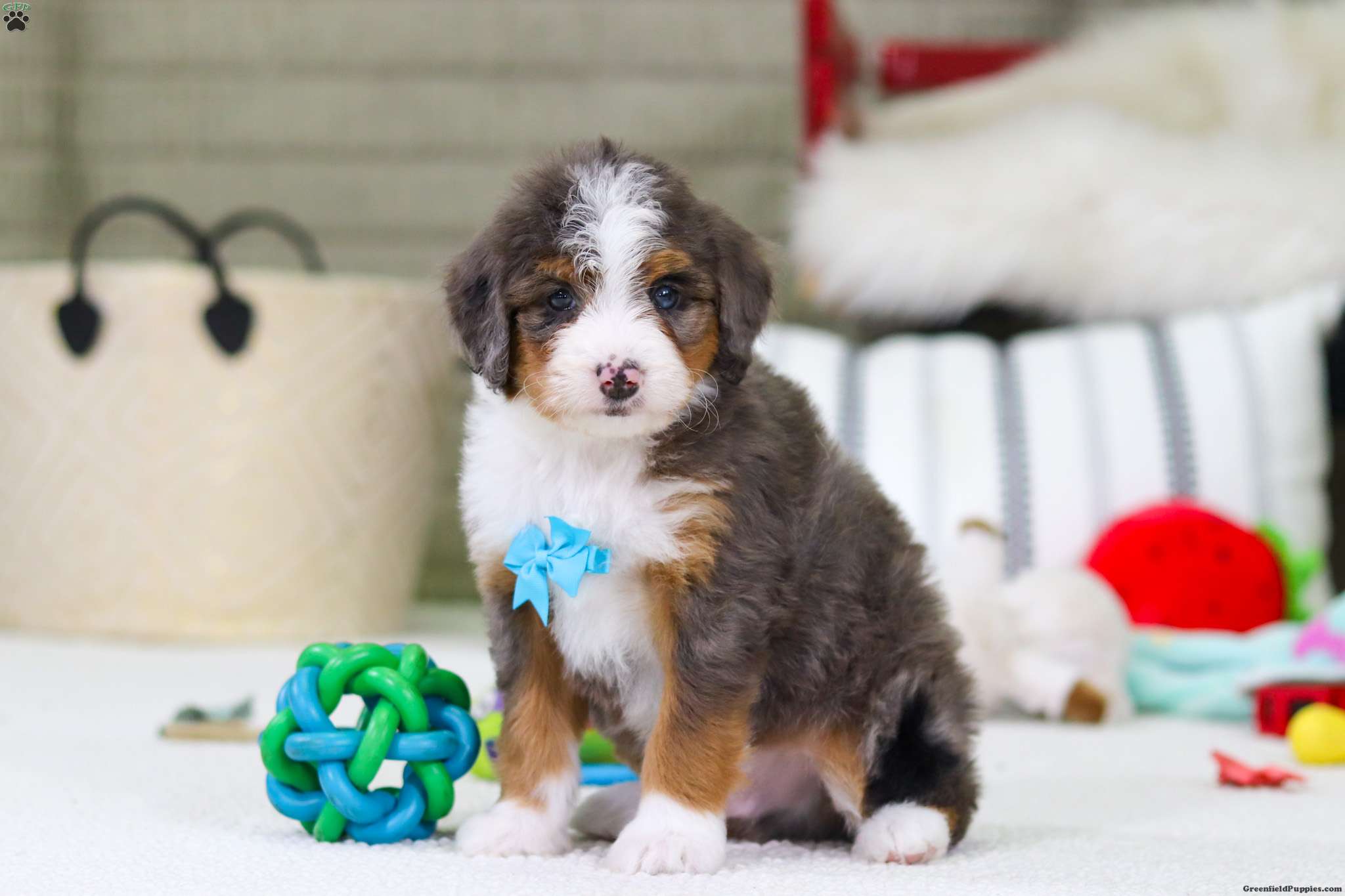 Hi, I’m Dexter! I’m a very cute Bernedoodle puppy with a fluffy coat and a sweet, loving personality. I love to play, explore, and make new friends, but I also enjoy snuggling up and giving lots of puppy kisses. I’m curious, happy, and full of energy, and I promise to fill my future home with joy and laughter. I can’t wait to meet my forever family and be their loyal, cuddly companion!